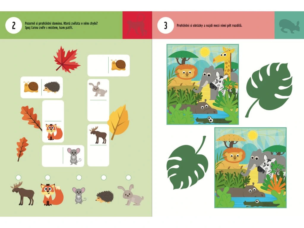 100 her Zvířata 4+ je zábavný pracovní sešit nabitý 100 krátkými aktivitami s tématem zvířat pro předškoláky, který podporuje logické myšlení, jemnou motoriku a kreativitu u dětí od 3 do 5 let.