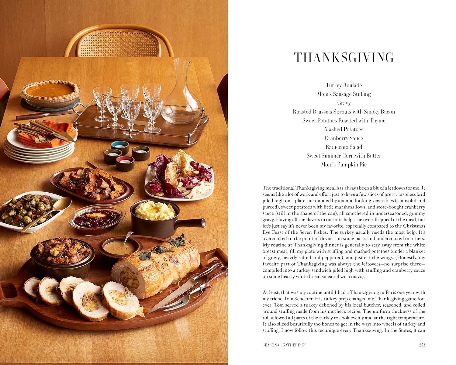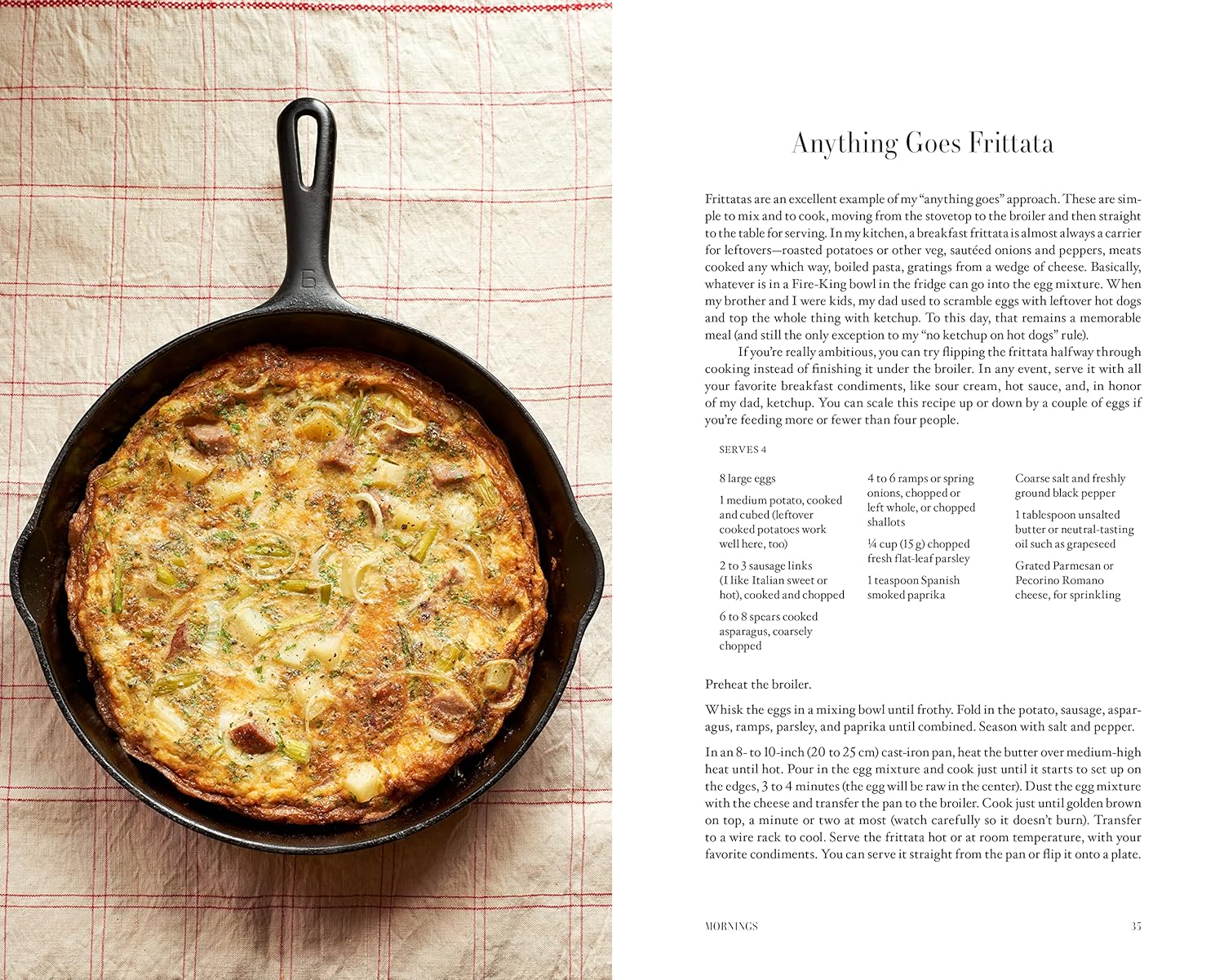 Po drodze Hranek dzieli się wszystkim: tym, co trzyma w spiżarni, jak wyposaża swoją kuchnię, strategiami zakupowymi (nigdy nie wracaj do domu z podróży bez kilku lokalnych składników; klasycznych naczyń szukaj na pchlich targach i wyprzedażach), jego nie -filozofia waste na okrawki i resztki oraz dziesiątki i dziesiątki profesjonalnych porad (zostaw skórkę na ziemniakach, aby domowe frytki miały lepszy smak; wymieszaj sos sałatkowy w słoiku i potrząśnij jak cholera, aby uzyskać idealną emulsję; nożyczki to najprostszy sposób na pocięcie domowej roboty pizza i focaccia).