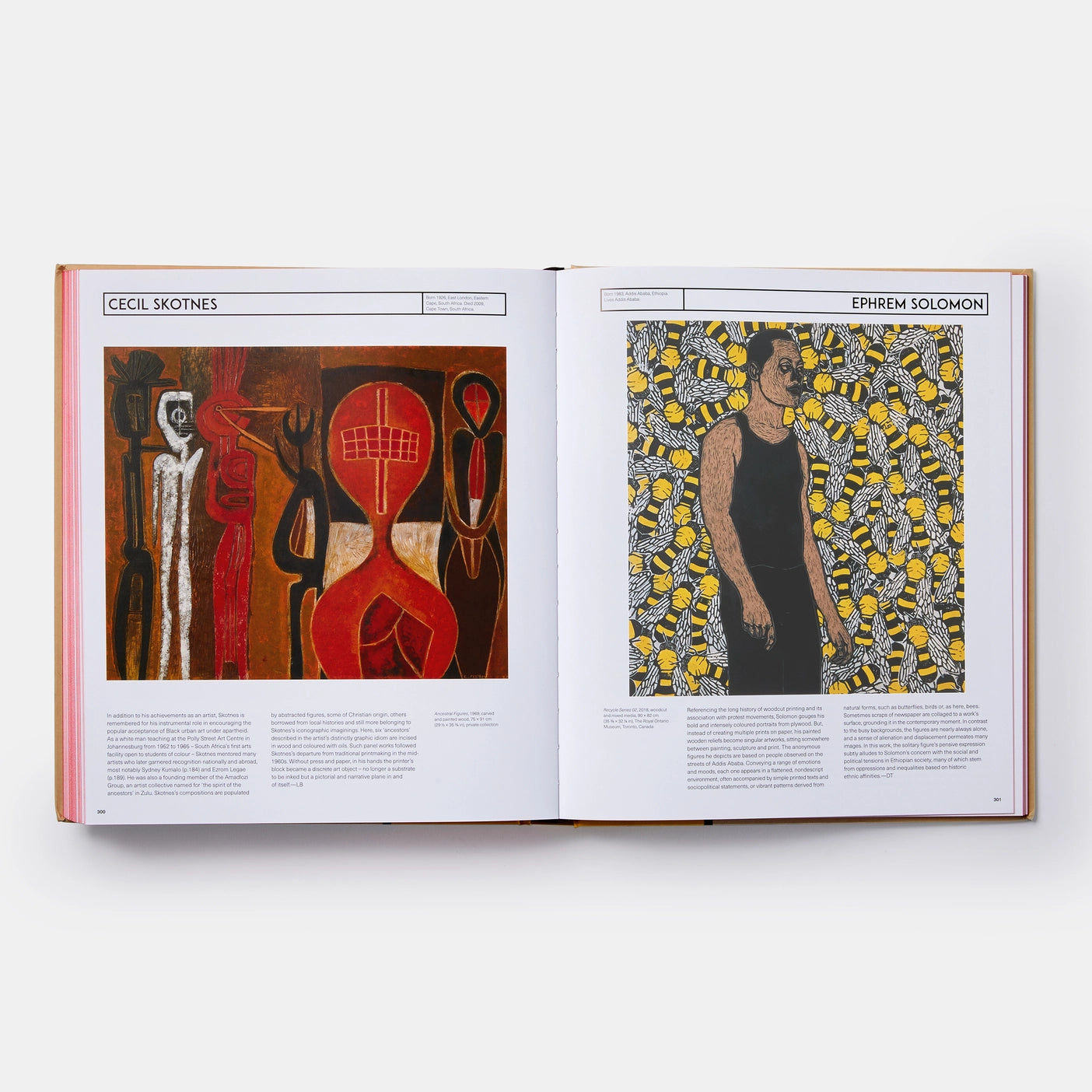 Nowoczesna i współczesna sztuka afrykańska stoi na czele obecnego ruchu kuratorskiego i kolekcjonerskiego na dzisiejszej scenie artystycznej. Ta przełomowa nowa książka, stworzona we współpracy z prestiżową światową radą doradczą, przedstawia najbardziej merytoryczną ocenę współczesnych artystów urodzonych lub mieszkających w Afryce. Zawiera prace ponad 300 artystów, w tym El Anatsui, Marlene Dumas, David Goldblatt, Lubaina Himid, William Kentridge, Julie Mehretu, Wangechi Mutu i Robin Rhode, a także mniej znane nazwiska z całej Afryki, z oszałamiającymi i zaskakującymi przykłady ich sztuki w połączeniu z wnikliwymi tekstami ukazującymi ich wkład w malarstwo, rzeźbę, instalację, fotografię, ruchomy obraz i sztukę performance.