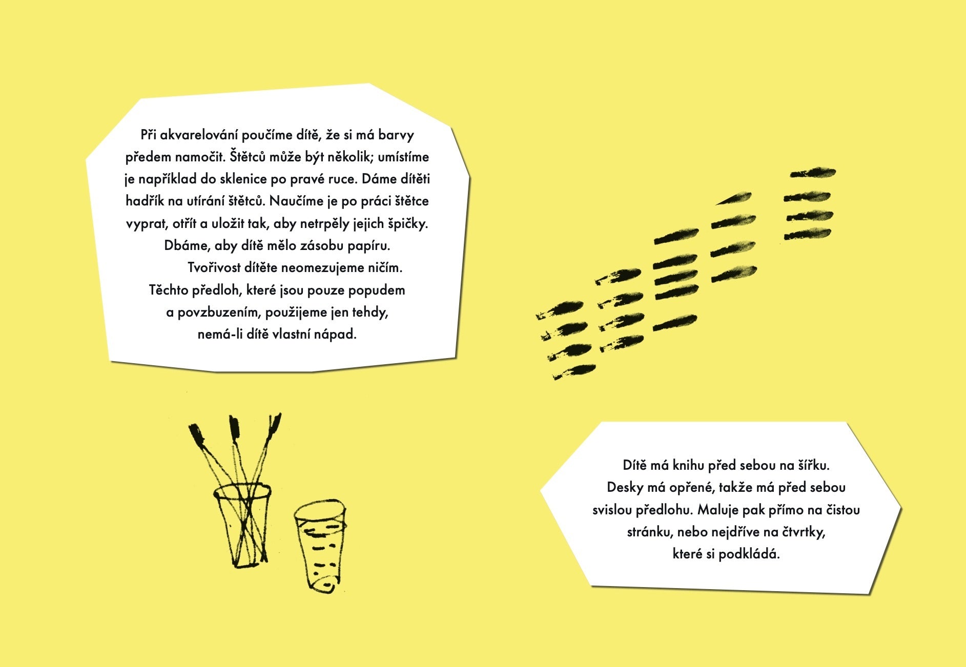 Listujte, prohlížejte, čtěte. Vezměte si štětce a barvy, malujte, dokreslujte, inspirujte se. Tvořte a hrajte si. Úvodní text z pera Daisy Mrázkové, nejdříve přibližuje čtenářům, jak postupovat, jak s knihou pracovat a začít tvořit pomocí techniky akvarelu. Následují jednotlivé ilustrace doprovázené verši. Kniha obsahuje 15 veršů a doprovodných ilustrací, které jsou proloženy prázdnými stránkami, které mohou děti využít pro vlastní malbu. Daisy Mrázková děti v knize pobízí k malbě od jednoduchých tvarů - čar, vlnovek, kroužků - až k malbě jednoduchých motivů, jako ptáci, hlava, postava apod. Ukazuje tak čtenářům, jak lehce spojením jednoduchých tvarů vytvořit vlastní obrázek.
