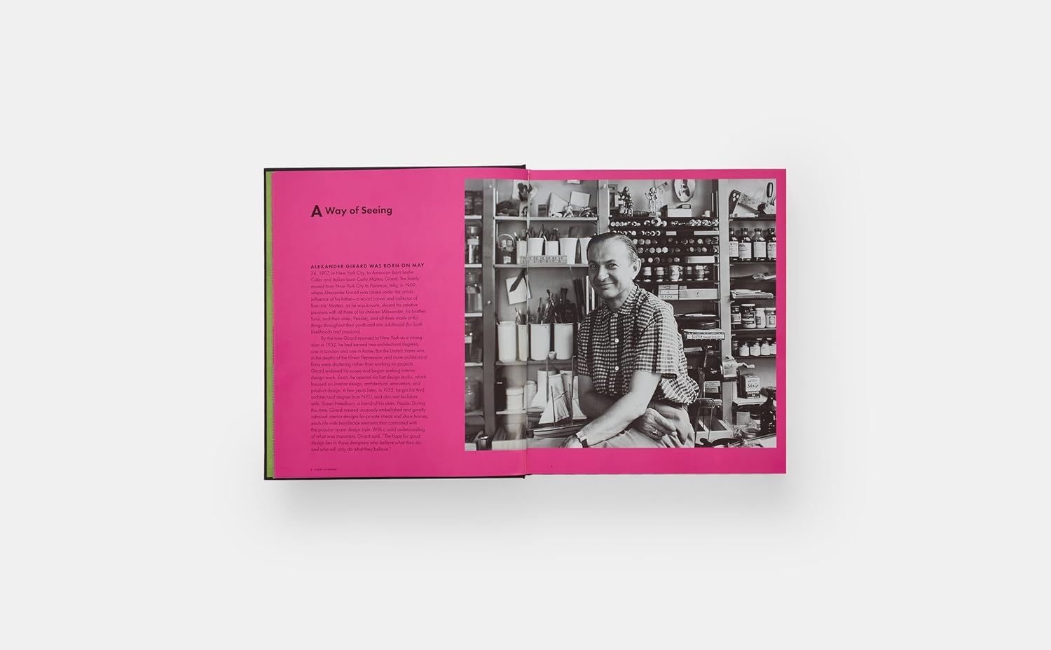 Extensively researched and thoughtfully assembled by designer Todd Oldham, in partnership with Girard Studio, the book features double gatefolds that immerse the reader in Girard's object design sketches, the vibrant environmental panels created for Herman Miller's Action Office project, his designs for Braniff International Airways, and his tireless explorations in textile design.