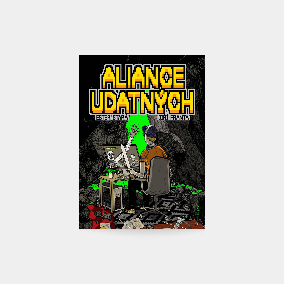 Kniha Aliance Udatných vypráví příběh dvěma způsoby. Epizody z Tomášova skutečného světa přináší TEXT Ester Staré a do kyberprostoru vtáhnou čtenáře KOMIKSY Jiřího Franty.