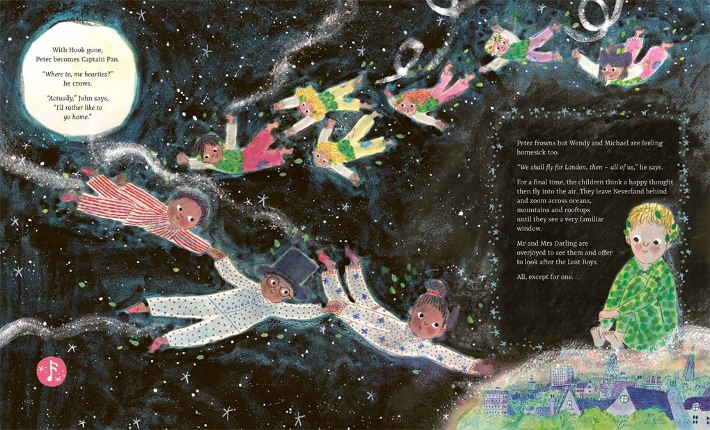 Join Peter, Wendy, Tinker Bell and Captain Hook in this sound book adventure and prepare to be swept away with one of the world's best-loved stories for the stage. Press the musical note on every page to hear classical music that will transport you to the world of Neverland.
