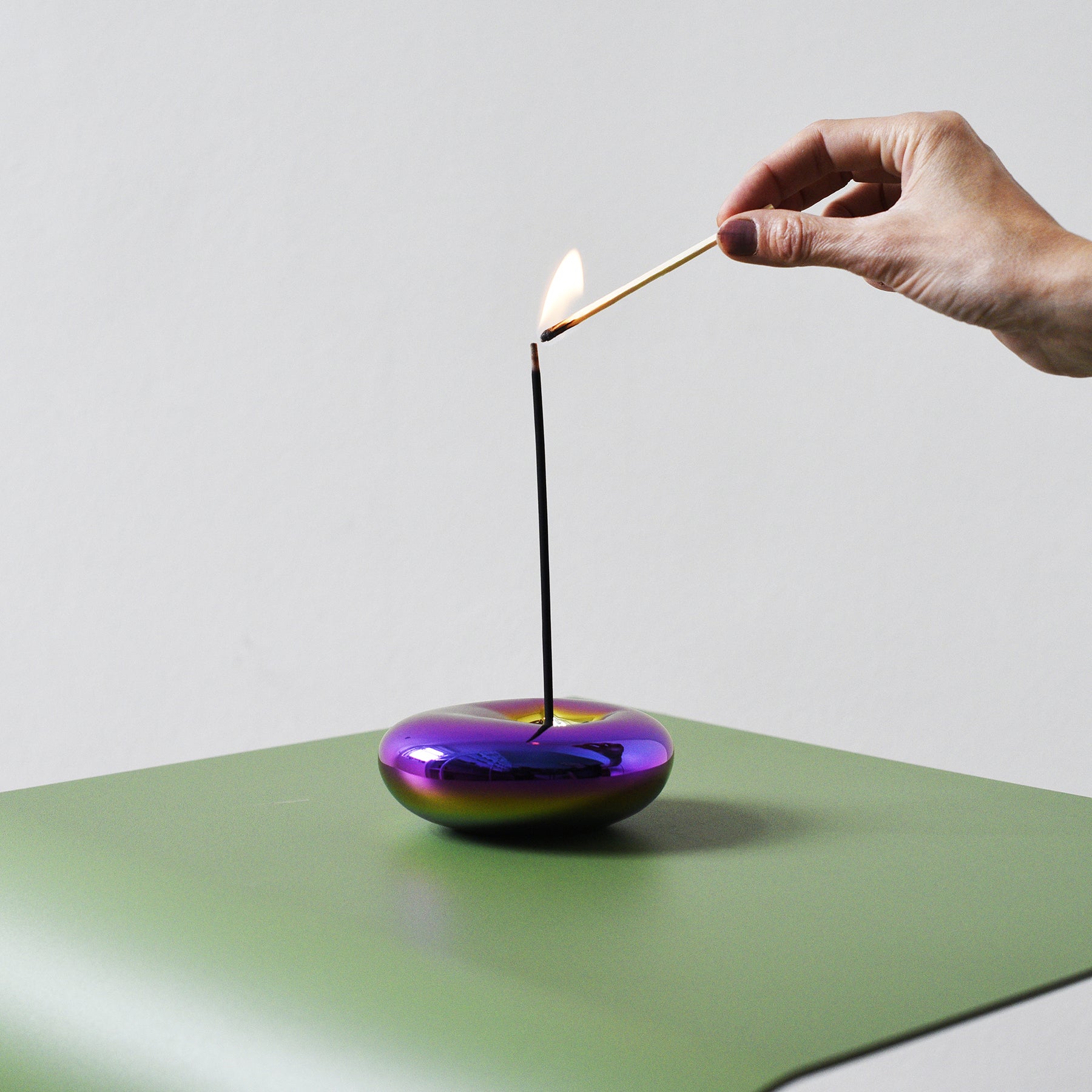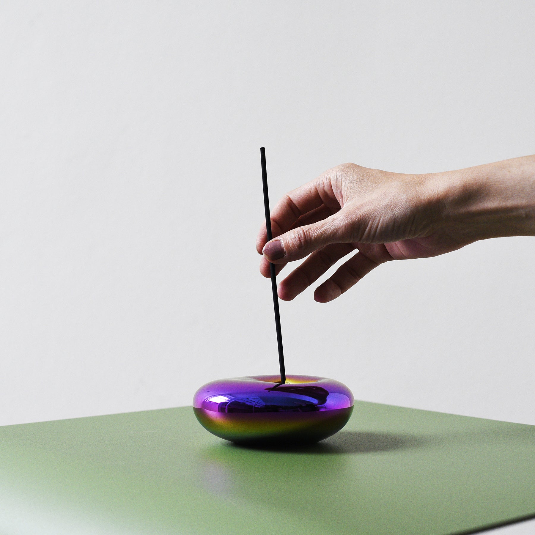 Porcelana w nieoczekiwany sposób, która sama w sobie stanowi element estetyczny niezależnie od przeznaczenia. Kadzidło Ołtarz autorstwa Daniela Piršča to nie tylko stojak na kadzidełka, to dzieło sztuki. Okrągłe kształty i zmienna siła metalicznego wykończenia zacierają granice i delikatnie łączą fantazję z rzeczywistością otoczenia zewnętrznego. Niezależnie od tego, czy jest to futurystyczny, pełen światła loft, czy eklektyczne studio, w którym kolekcje i zapach książek odgrywają rolę, granice między rzeczywistością a fantazją zacierają się w jedną dzięki zaokrąglonym kształtom i zmieniającym się opalizującym kolorom metalicznego wykończenia. Wejdź do własnej galerii, w której możesz pozostać tak długo, jak chcesz. Żadnych zasad, żadnych ograniczeń. Twój wewnętrzny świat w odbiciu zewnętrznego. Jak głęboko zejdziesz?