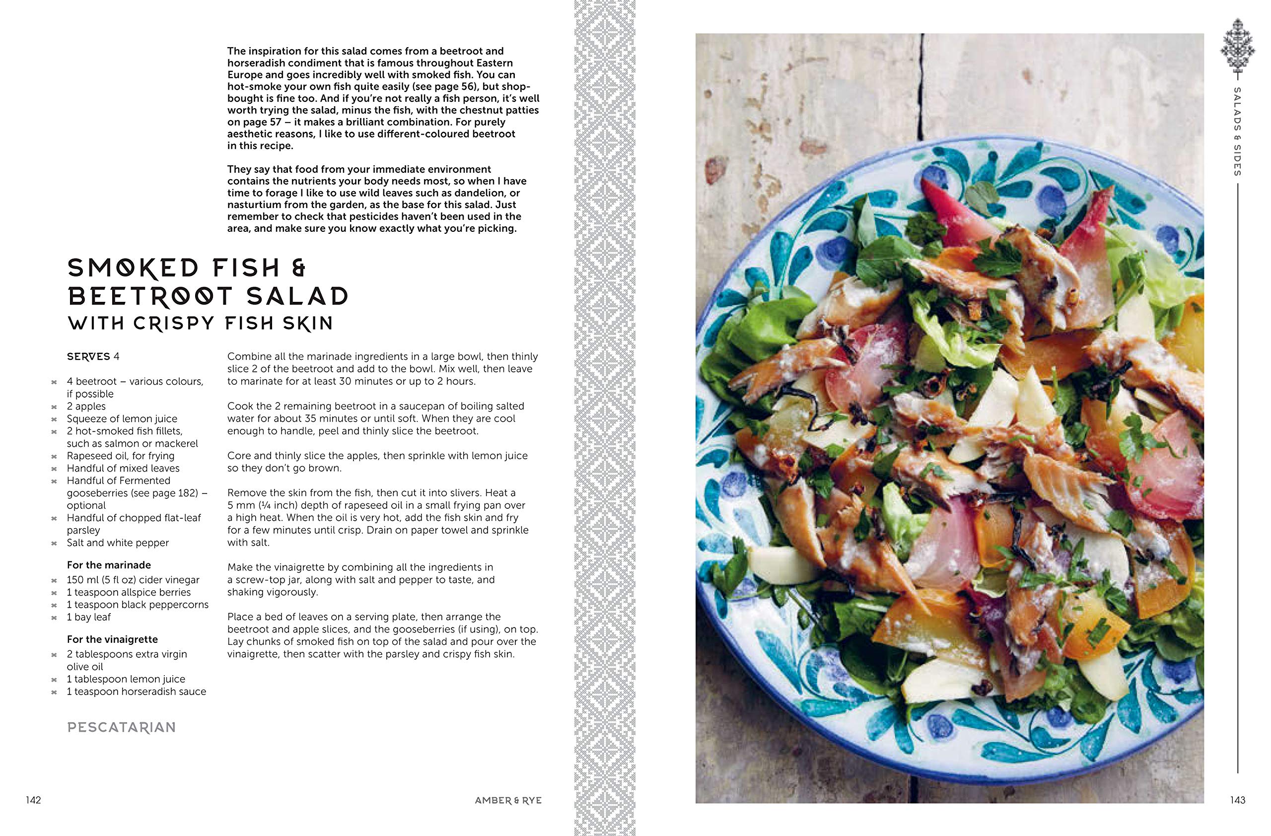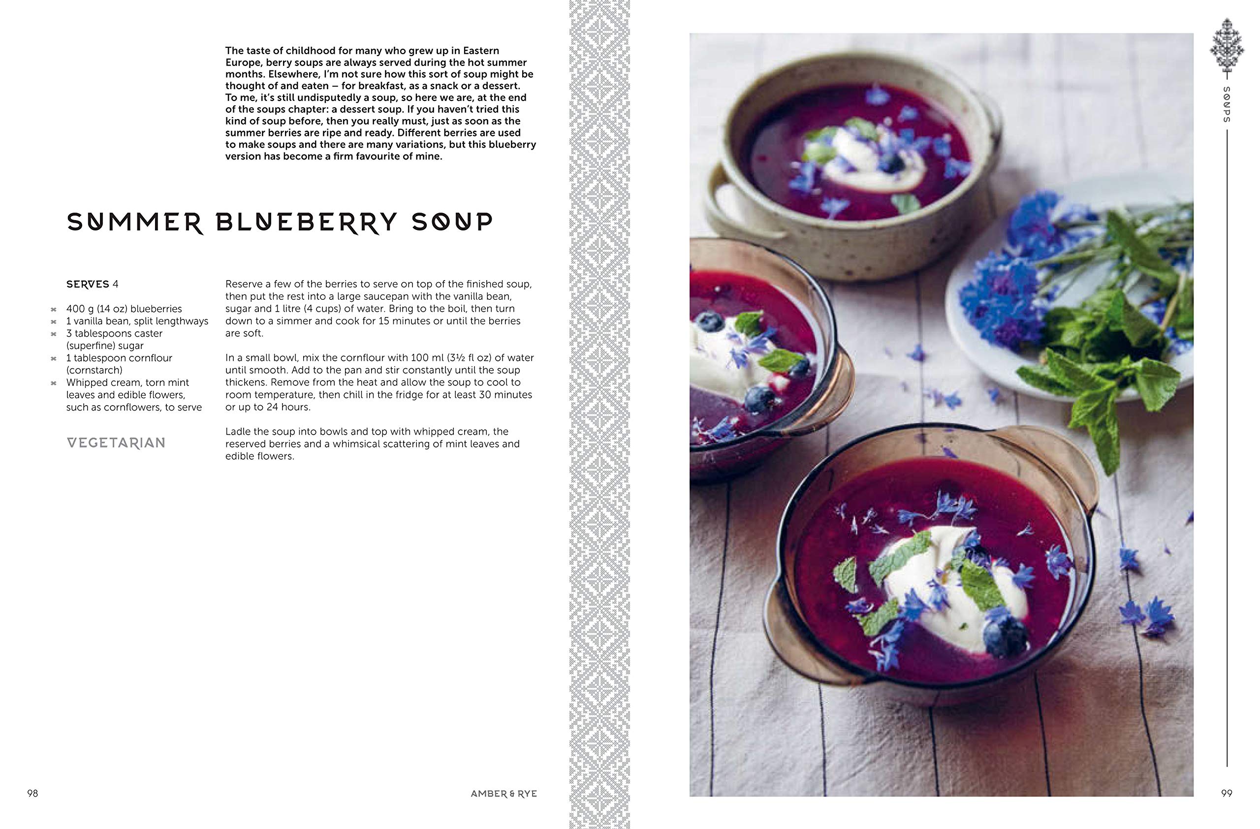 W krajach bałtyckich spotykają się dwa światy: Morze Bałtyckie łączy Europę Wschodnią i Skandynawię. Amber & Rye odkrywają ten obszar, oprowadzając Cię po stolicach, dzieląc się historiami i odkrywając dynamiczny, nowy styl gotowania. Przepisy czerpią z bałtyckiej tradycji, a jednocześnie inspirowane są współczesnymi trendami, dzięki czemu są nowoczesne, niepowtarzalne i łatwe do odtworzenia w domu. Znajdują się tu także fragmenty poezji, literatury, piosenek i przysłów, które dodają bogatą warstwę kontekstu, dzięki czemu Amber & Rye jest kulturowym punktem odniesienia dla podróżników, a także wizytówką nowej, tętniącej życiem kuchni.