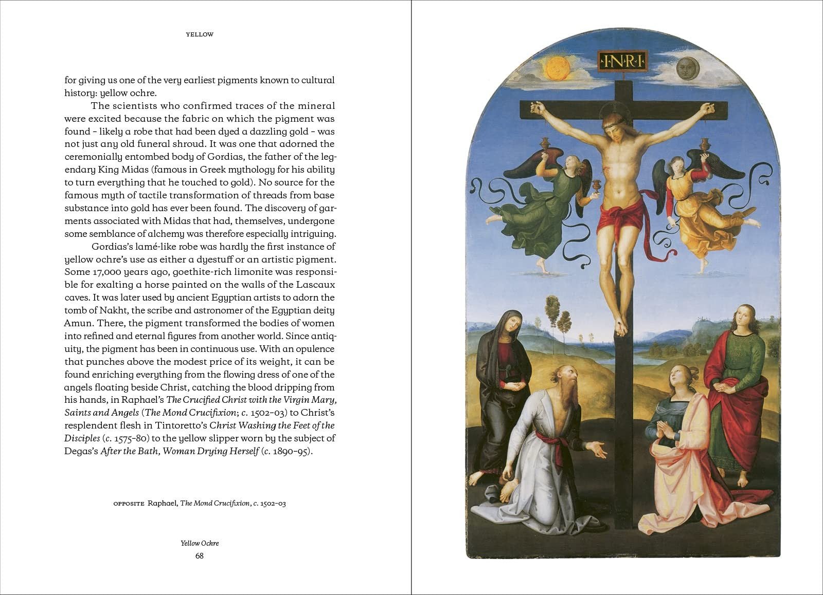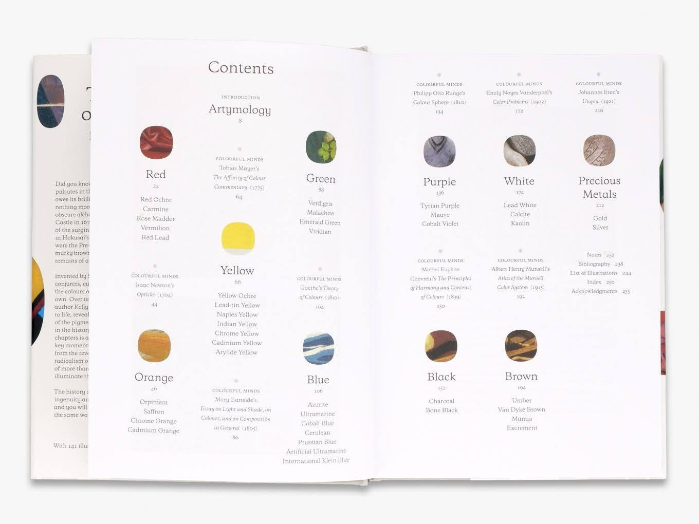 Wymyślone przez prehistorycznych mieszkańców jaskiń i średniowiecznych magików, przebiegłych oszustów i doświadczonych naukowców, kolory sztuki opowiadają własną, fascynującą historię. W dziesięciu fascynujących rozdziałach uznana autorka Kelly Grovier pomaga ożywić tę opowieść, odkrywając zdumiewające historie pigmentów, które definiują największe dzieła w historii sztuki. Pomiędzy tymi rozdziałami przeplata się szereg elementów skupiających się na kluczowych momentach ewolucji teorii koloru – od objawień Oświecenia po radykalizm Bauhausu – podczas gdy reprodukcje starannie wybranych dzieł sztuki pomagają rozjaśnić zwroty akcji narracji.