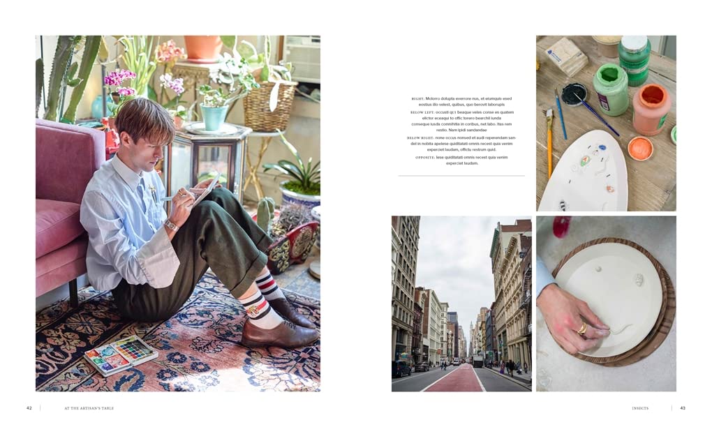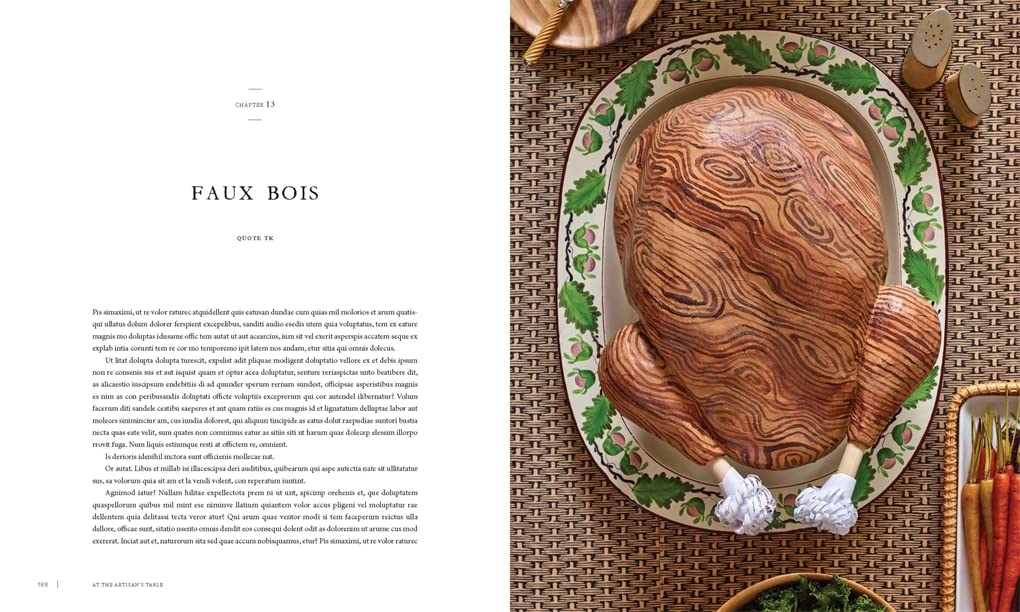 W całej historii dekoracja blatów była połączeniem funkcji użytkowej i innowacyjnego designu. W książce At the Artisan's Table projektanci i producenci wydarzeń Jane Schulak i David Stark łączą historyczne zastawy stołowe z najlepszych muzeów designu na świecie z dziełami międzynarodowej gamy współczesnych rzemieślników, którzy na nowo interpretują tradycyjne rzemiosło i style, w tym Aptware (marmurkowa glina), blue- i-biały Delft, chinoiserie, faux bois, gips, rozpryski i trompe l'oeil. W każdym rozdziale znajduje się obiekt muzealny pełniący rolę „muzy”; dzieło i pracownia artysty, który unowocześnił tradycyjne rzemiosło; oraz wspaniałe nakrycia stołu zaprojektowane przez Schulaka i Starka, które zawierają ręcznie robione wyroby artysty i stanowią inspirację dla każdego, kto kiedykolwiek chciał zachwycić swoich gości na kolacji.