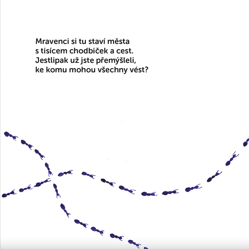Neotřelý básnický příběh o korunovaci a svatbě mladé mravenčí královny, která se právě chystá vzlétnout a založit nové mraveniště.