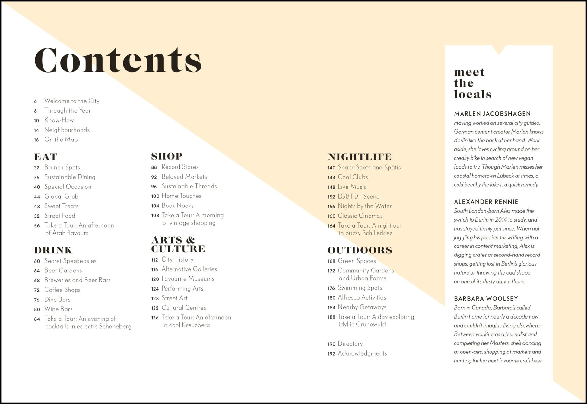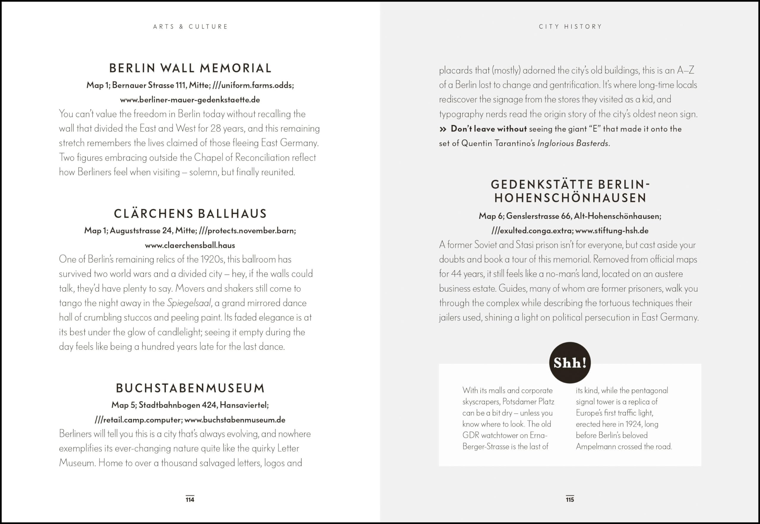 Kniha je strukturovaná podle čtvrtí a městských oblastí, takže umožňuje plánovat den přirozeně – podle toho, kde se právě nacházíte.