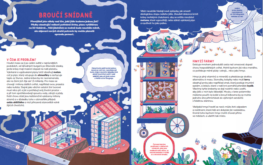 Przyjrzymy się razem naszemu stołowi, szkole, parkowi i farmie i pokażemy, jak niektóre z ich ekscentrycznych i rewolucyjnych wynalazków mogą sprawdzić się w życiu codziennym. Zabawne ilustracje pełne ciekawych faktów i informacji pokazują, jak mogłaby wyglądać bardziej ekologiczna przyszłość.