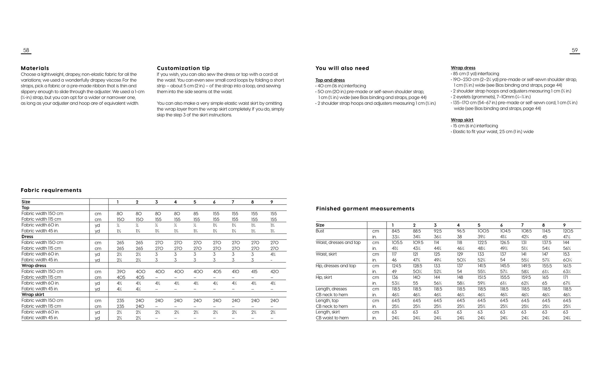 W tym schludnym opakowaniu znajduje się sześć pełnowymiarowych arkuszy wzorów. Wzory są dostępne w różnych rozmiarach, od rozmiarów brytyjskich 8 do 22 (rozmiary amerykańskie od 2 do 18 / rozmiary od 34 do 50 EUR), ze zwięzłymi informacjami na temat samodzielnego pomiaru i technicznymi wskazówkami dotyczącymi szycia, które pozwolą Ci uszyć Twój kształt.