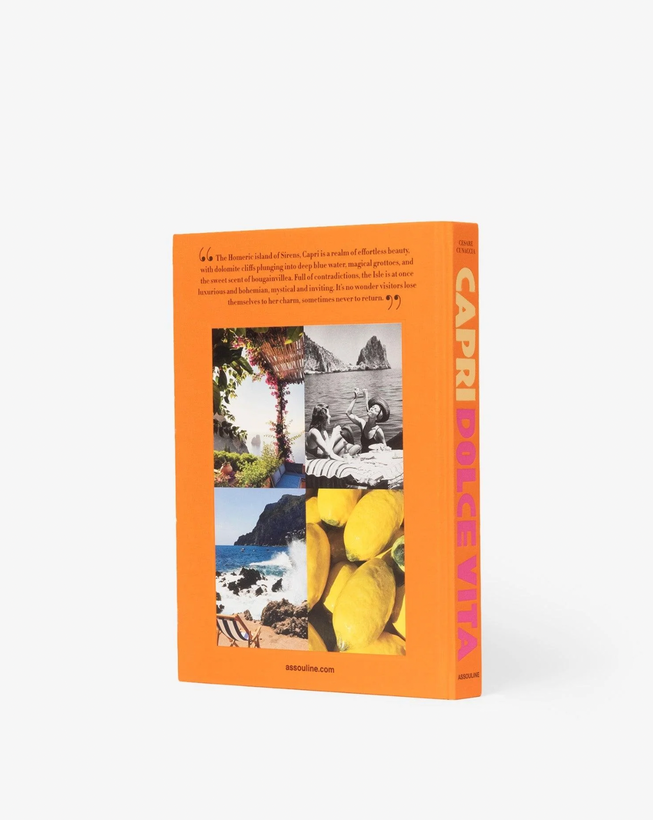 Capri, wyspa wypoczynkowa, której początki sięgają czasów Cesarstwa Rzymskiego, od dawna jest niezwykłym kierunkiem pełnym starożytnego uroku. Ceniony przez wszystkich, począwszy od lekarza Axela Munthe'a, który zalecał swoim pacjentom czyste powietrze jako lekarstwo na zapalenie oskrzeli; reżyserowi Jean-Lucowi Godardowi jako sceneria dla jego filmu Pogarda z 1963 roku; po ikony literatury, celebrytów, poetów i samoloty odrzutowe, Capri może poszczycić się bogatym śródziemnomorskim duchem i stylem, obejmującym bogactwo piękna, od ogrodów, przez wille, jaskinie, po ludzi spacerujących po tętniącym życiem Piazzetta, gdzie samochody są zabronione, a wyspa zabawna postawa jest powszechna. Capri Dolce Vita to spojrzenie na ten legendarny zakątek świata na przestrzeni wieków i celebracja raju na ziemi.