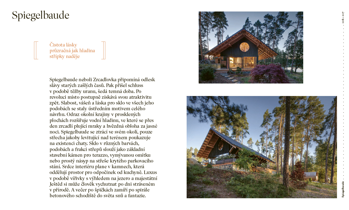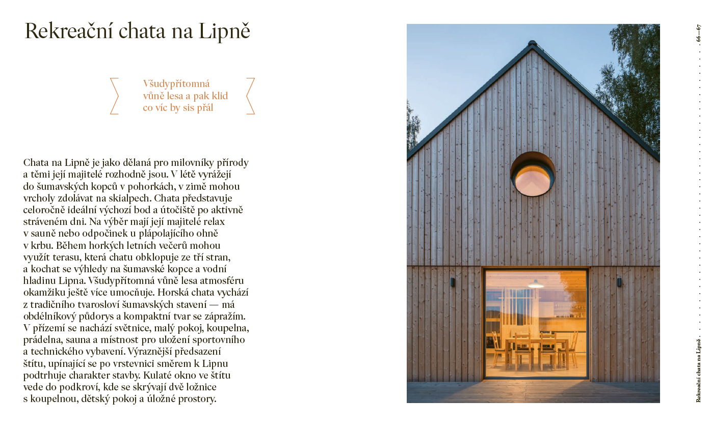 Wyjątkowa książka poświęcona czeskim saunom. Książka przedstawia współczesne sauny czeskie i słowackie z wielu punktów widzenia: od projektu samych płuczek, przez dobór odpowiedniego drewna, po fizjologiczne oddziaływanie na organizm ludzki, aż po wpływ aromaterapii podczas saun.