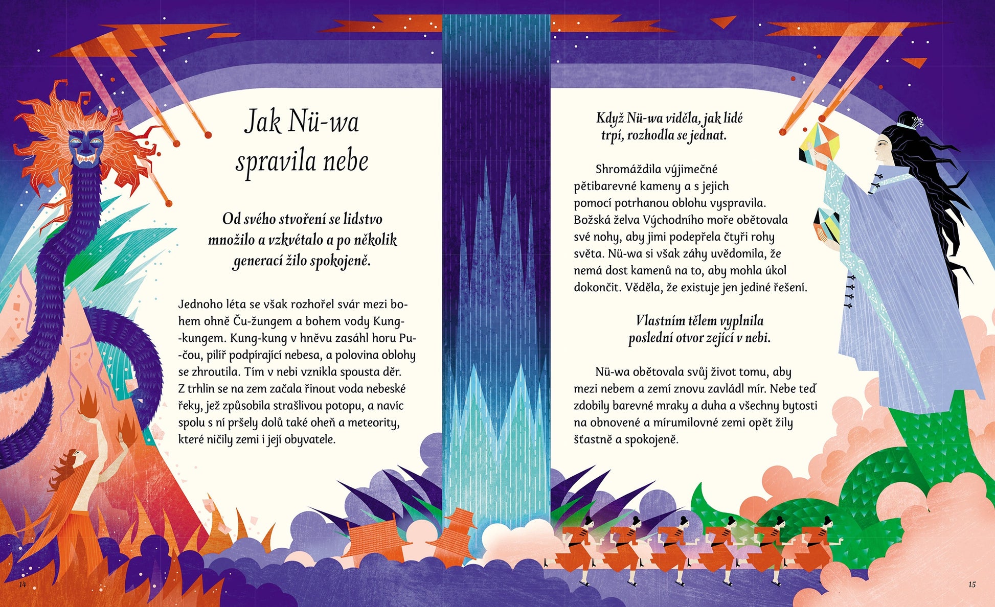 Ponořte se do světa kouzelných bytostí, mocných božstev i statečných bojovníků a bojovnic v poutavé sbírce starých čínských mýtů. Dvacet dechberoucích příběhů doplněných o zajímavá fakta se pro mladé čtenáře stane přitažlivým úvodem do fascinujícího světa starověké Číny a kniha bude dokonalým dárkem pro děti, které se rády dozvídají něco nového o dějinách a mytologiích.