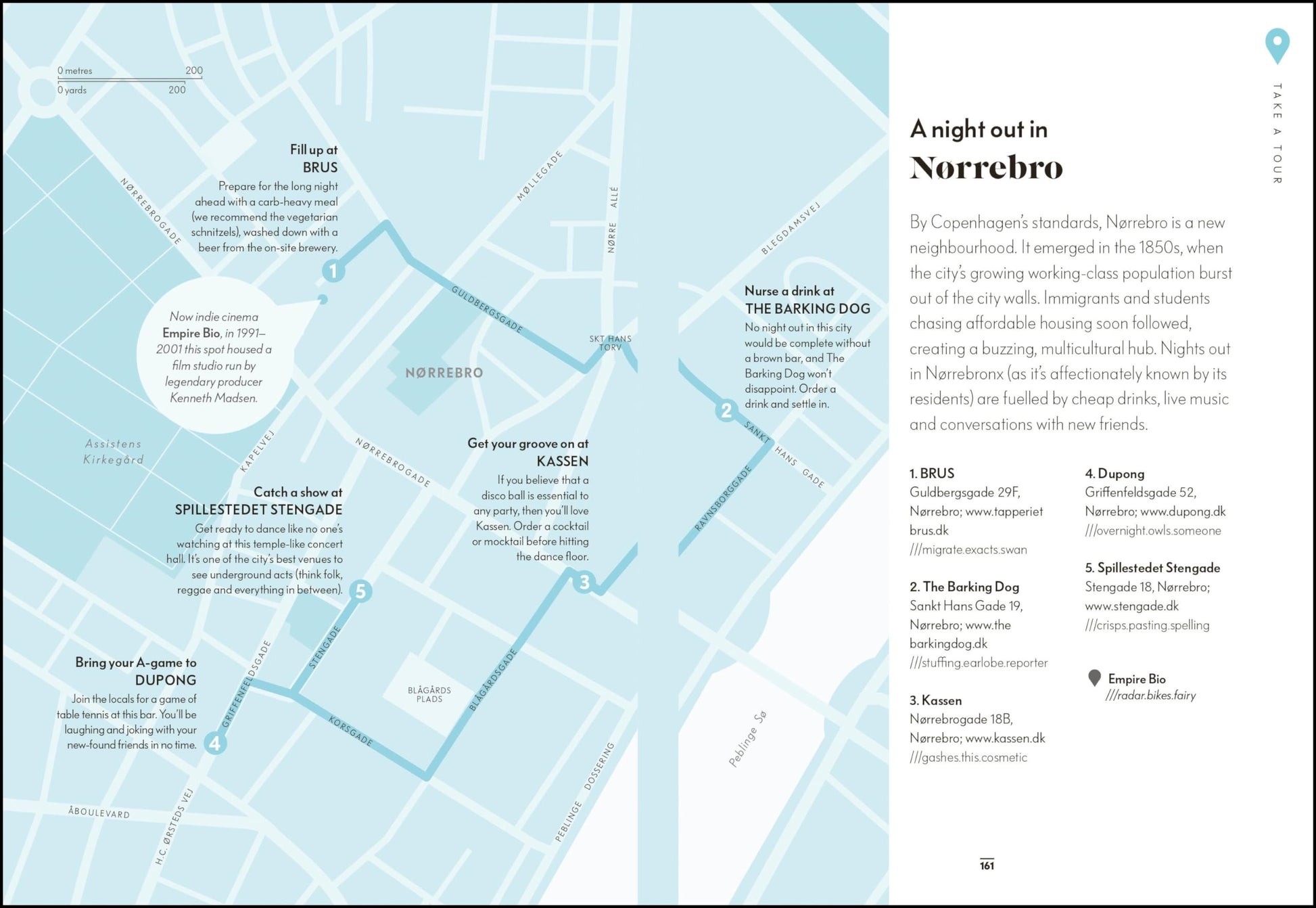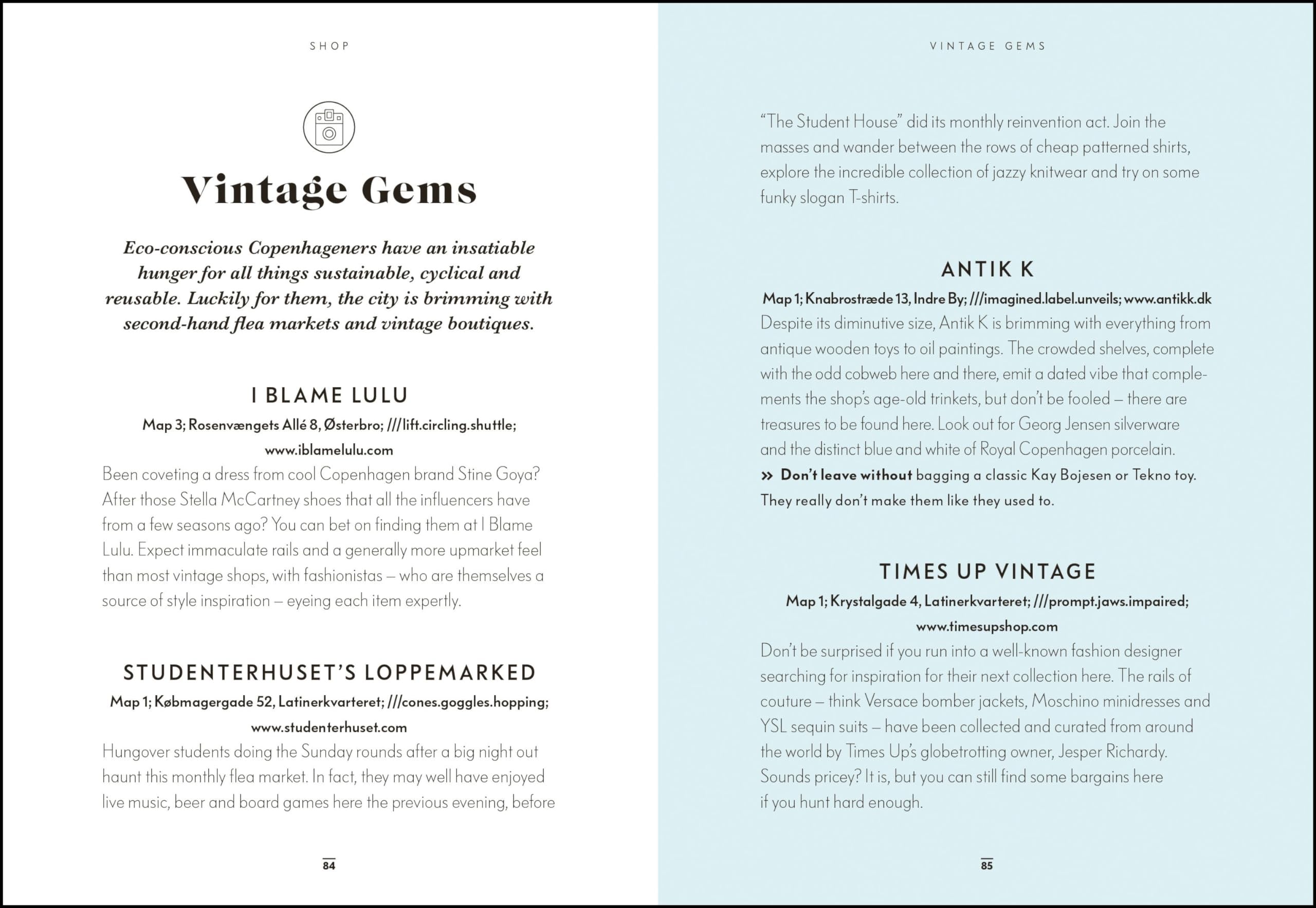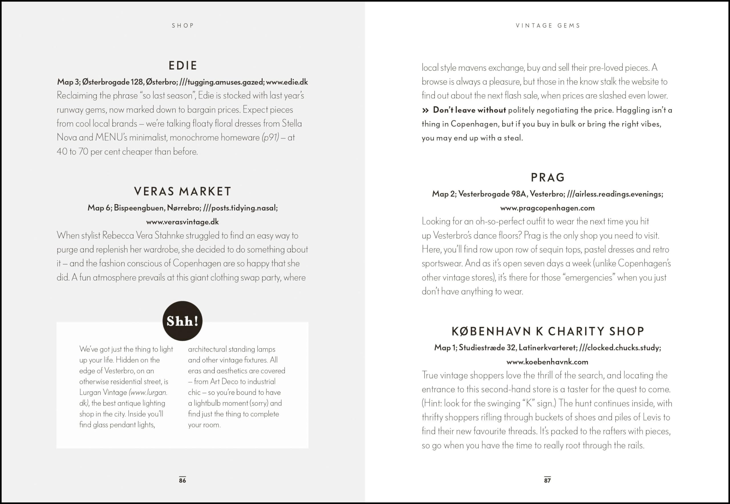 Kniha je strukturovaná podle čtvrtí a městských oblastí, takže umožňuje plánovat den přirozeně – podle toho, kde se právě nacházíte.