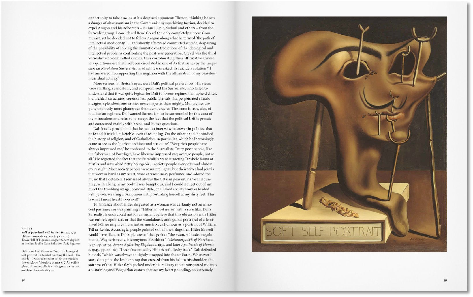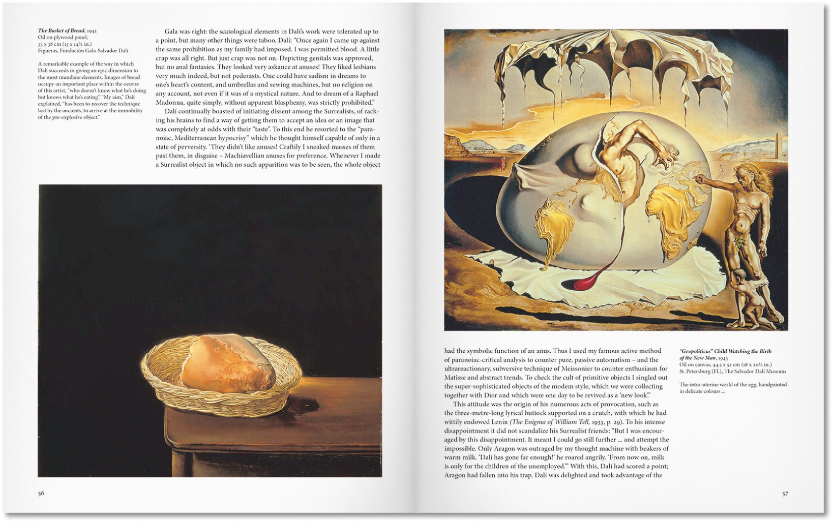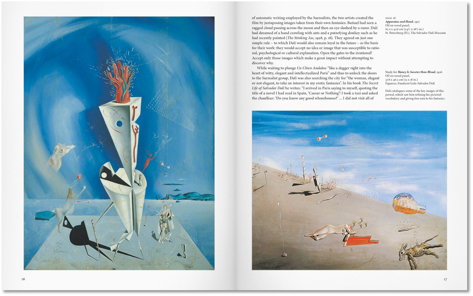 Ta książka bada zarówno malarstwo, jak i osobowość Dalego, przedstawiając jego umiejętności techniczne, a także prowokacyjne kompozycje i trudne tematy śmierci, rozkładu i erotyzmu.
