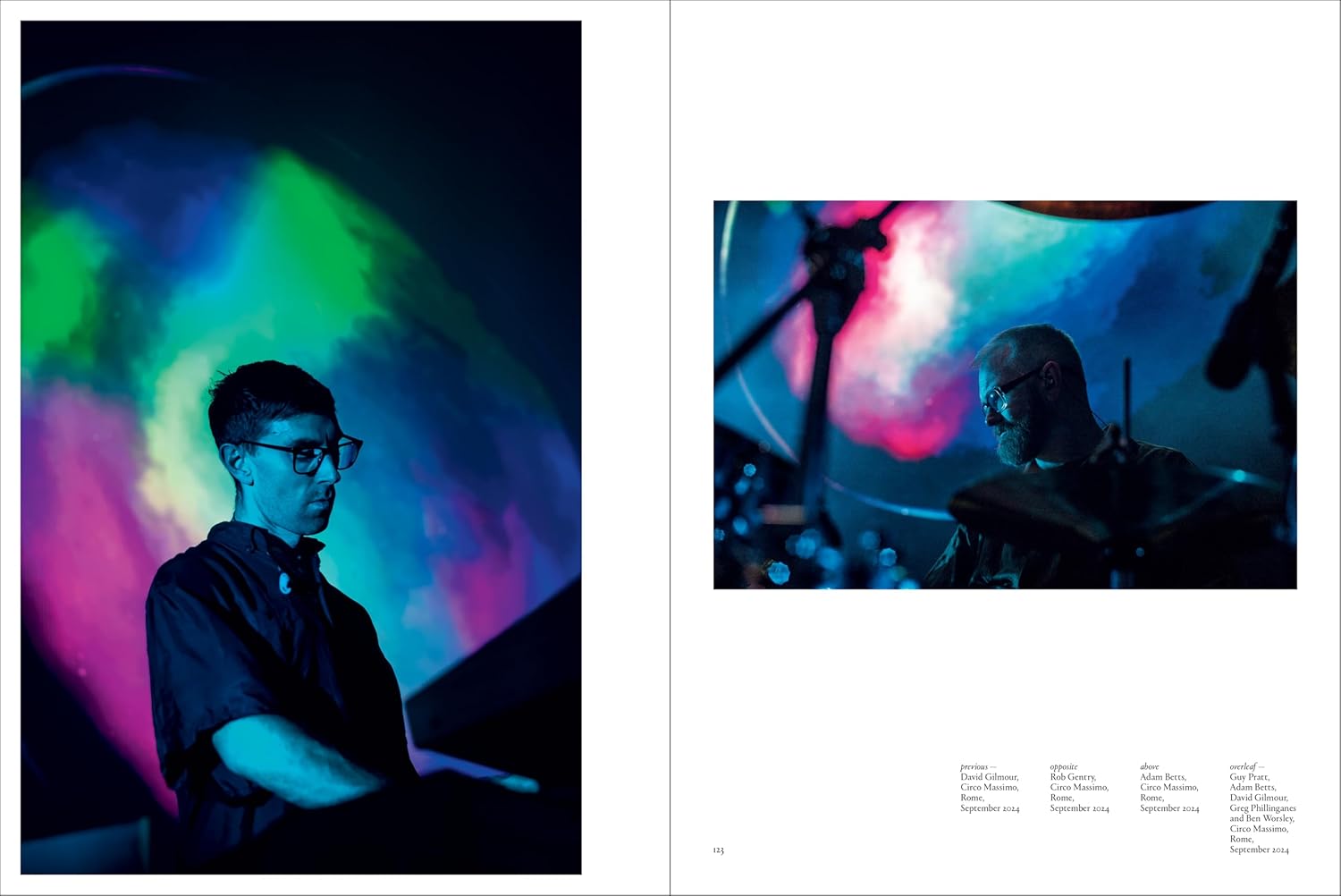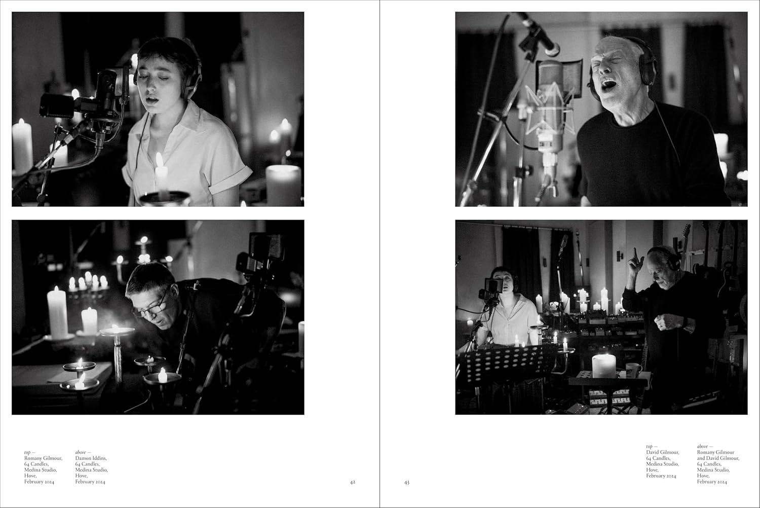Samson, who is Gilmour’s partner and creative collaborator, and an acclaimed novelist / photographer in her own right, wrote many of the album’s lyrics; their children contribute vocals, words and in Romany Gilmour, their daughter, we discover an ethereal new voice and beguiling stage presence. The album’s preoccupations are mortality, living and ageing. This photobook captures that process as it takes shape: from conception and recording, from off-duty and studio immersion, to release and live performance; from intimate behind-the-scenes shots, to theatrical stage moments. We see an artist at work, the collaborative process, the moments of light relief―and the focus as the work takes flight.