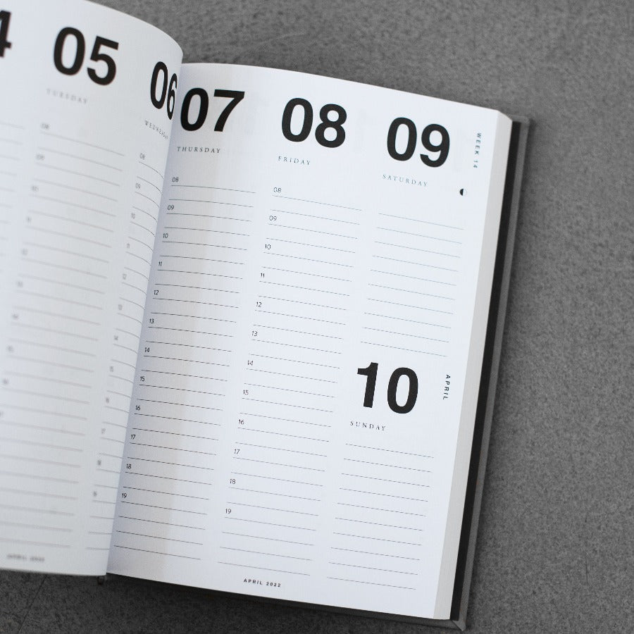 Ten pamiętnik ma twardą okładkę, wykończoną piękną jasnobeżową sztuczną skórą i detalami ze srebrnej folii. Strony wewnętrzne są całkowicie czarno-białe i mają stylowe, minimalistyczne wykończenie.