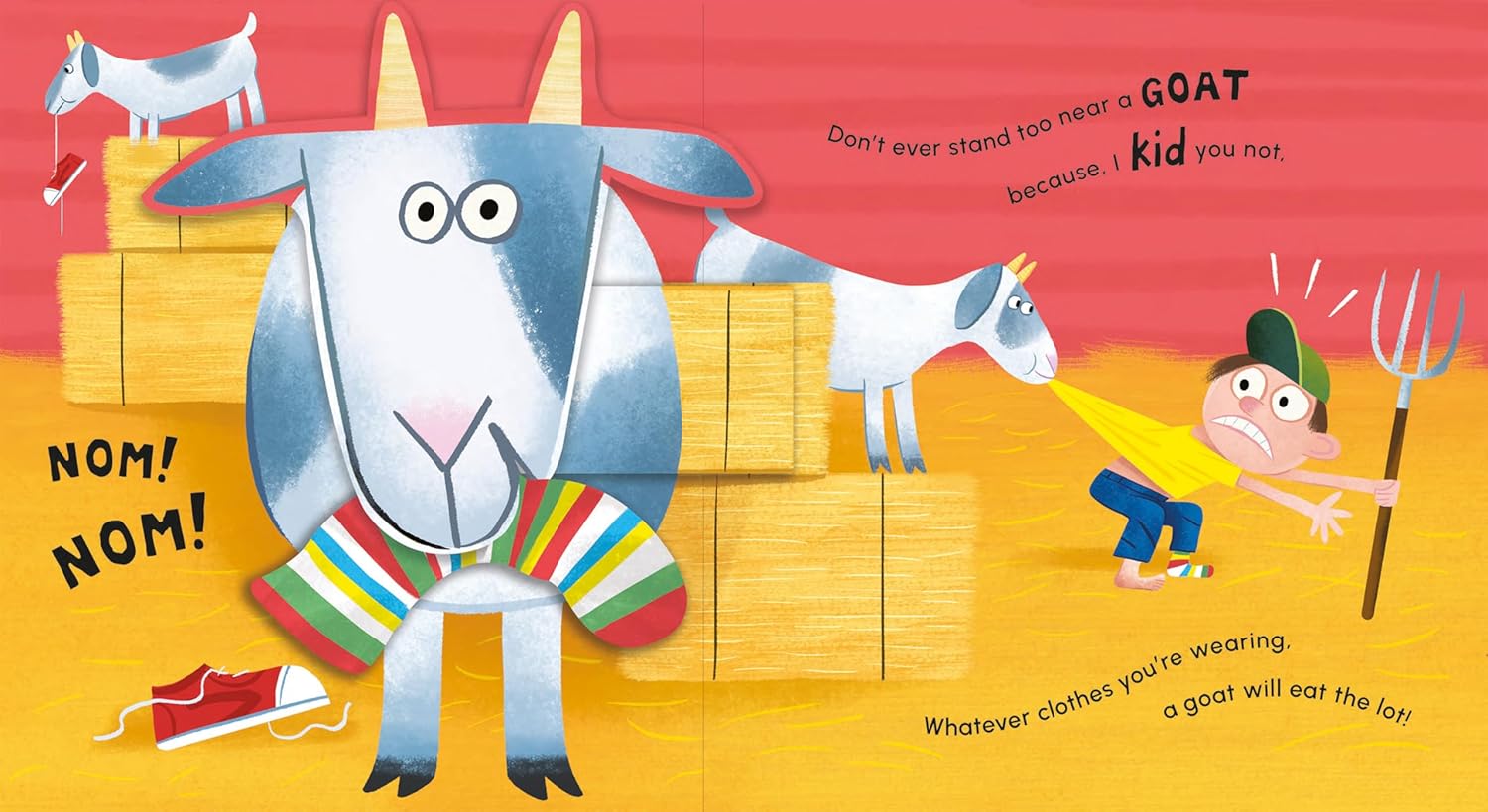 This bright, engaging pop-up book is packed with puns to get your little reader giggling! Turn the pages to reveal hilarious farm animals who pop-up in all sorts of scenarios, from startled roosters and sock-munching goats to DJ pigs and dancing cows. With vibrant illustrations by Michael Slack and witty rhyming text by Harriet Evans, this book is guaranteed to be a humorous hit!