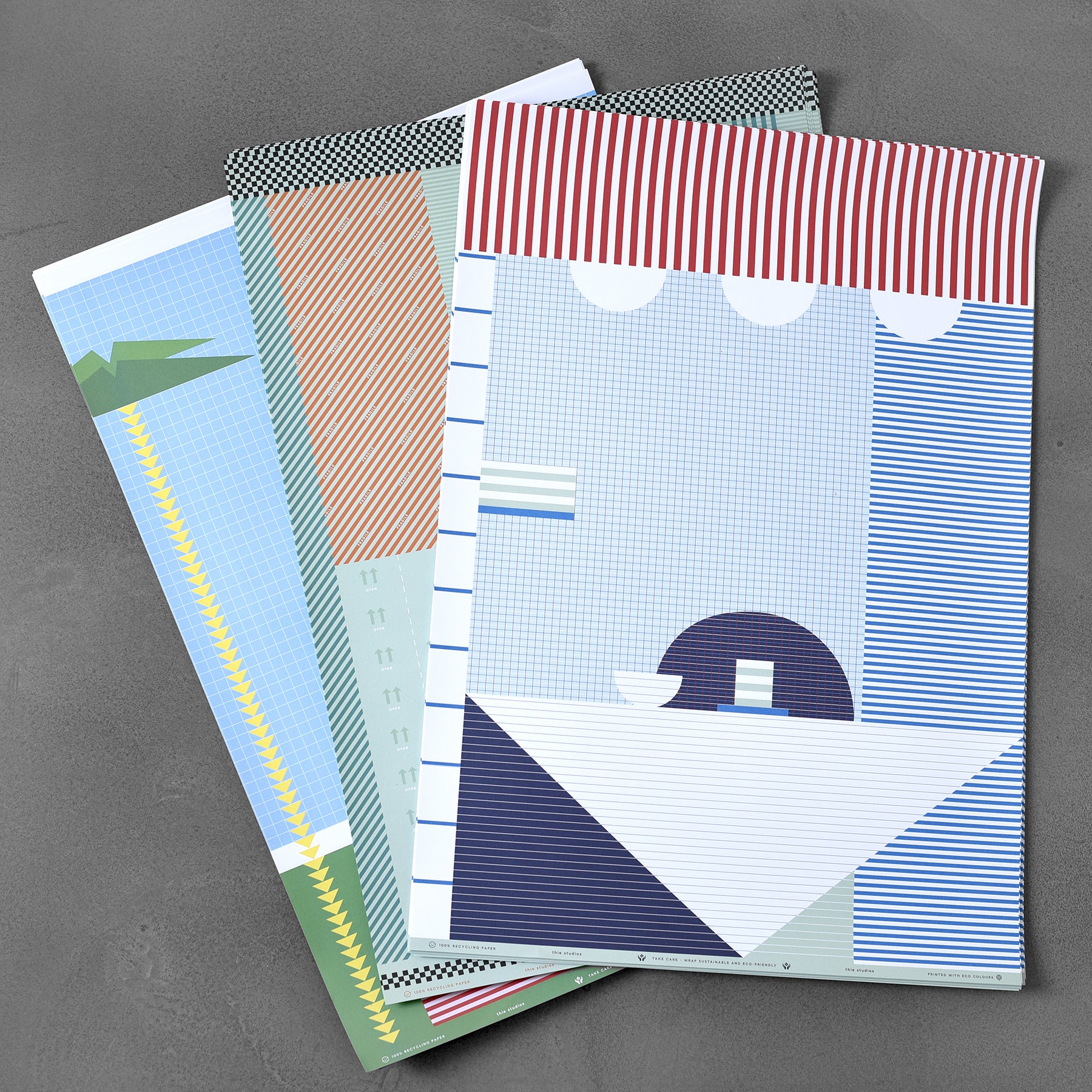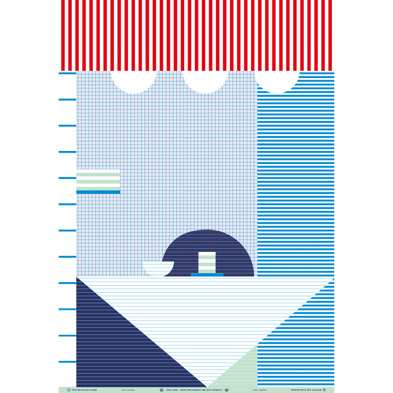 W 100% najwyższej jakości papier pakowy z recyklingu firmy Thie Studios, zadrukowany ekologicznymi tuszami, wyprodukowany w Niemczech.