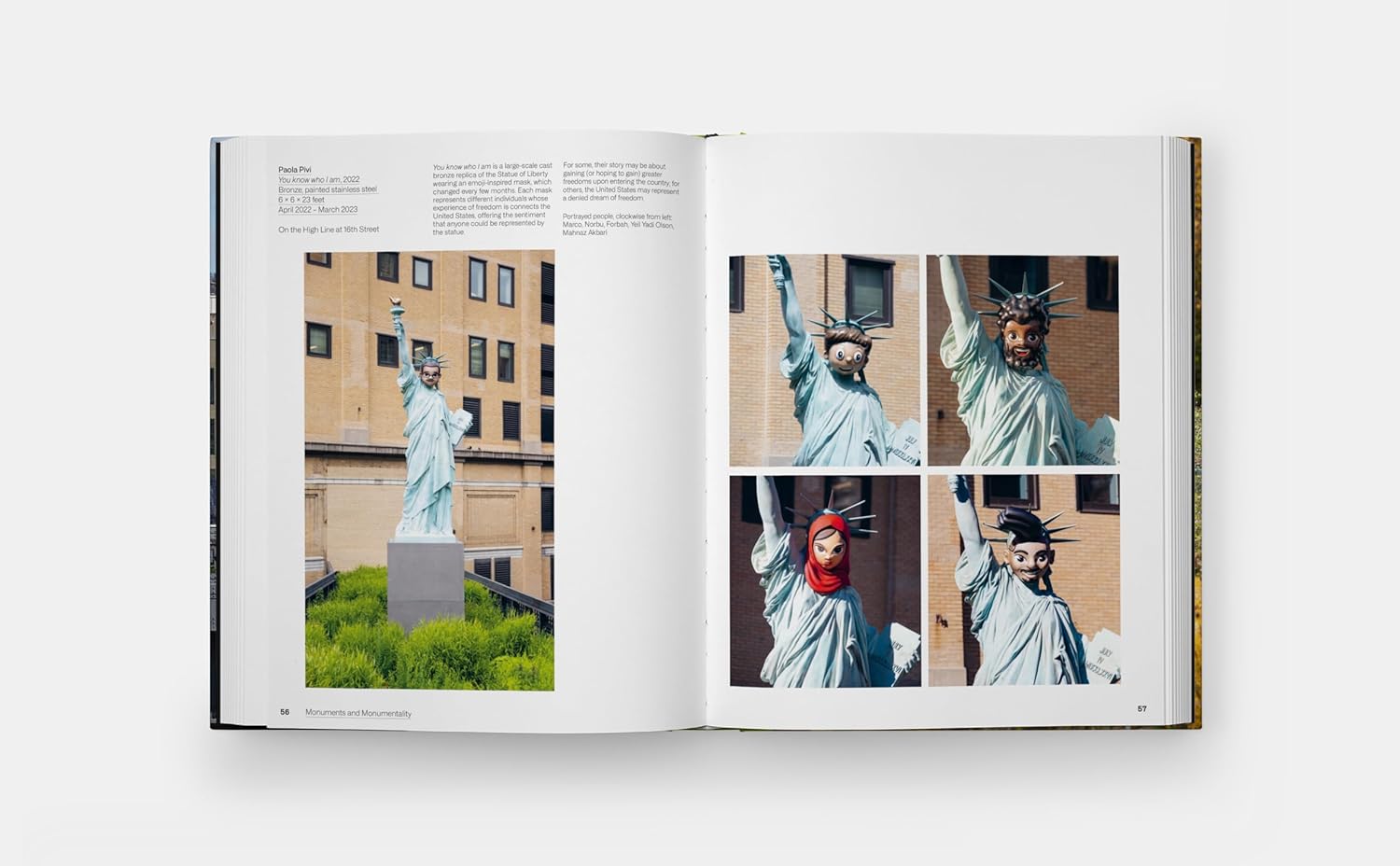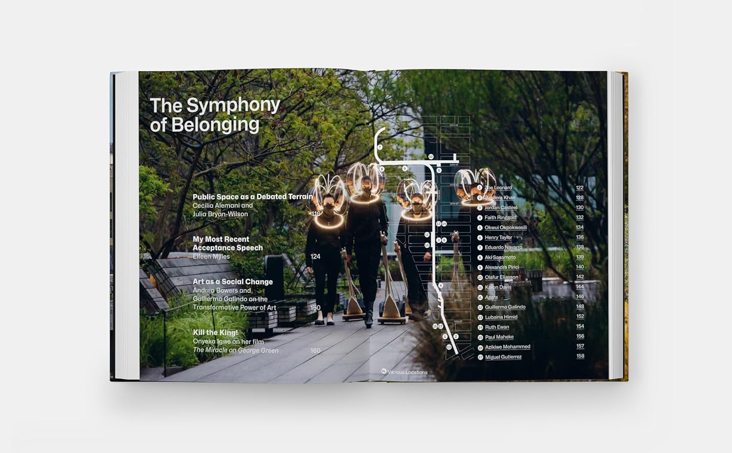 The book features a world-class array of projects by artists including Simone Leigh, Paola Pivi, Sam Durant, Jordan Casteel, Cecilia Vicuña, Sheila Hicks, El Anatsui, Phyllida Barlow, Faith Ringgold, Barbara Kruger, Zoe Leonard, and many others. It documents the creative evolution and vibrant cultural programming of High Line Art, which offers a city-scale canvas for artists and performers to interact with, seen in abundant photographs that chronicle the projects across the passage of seasons in the park.