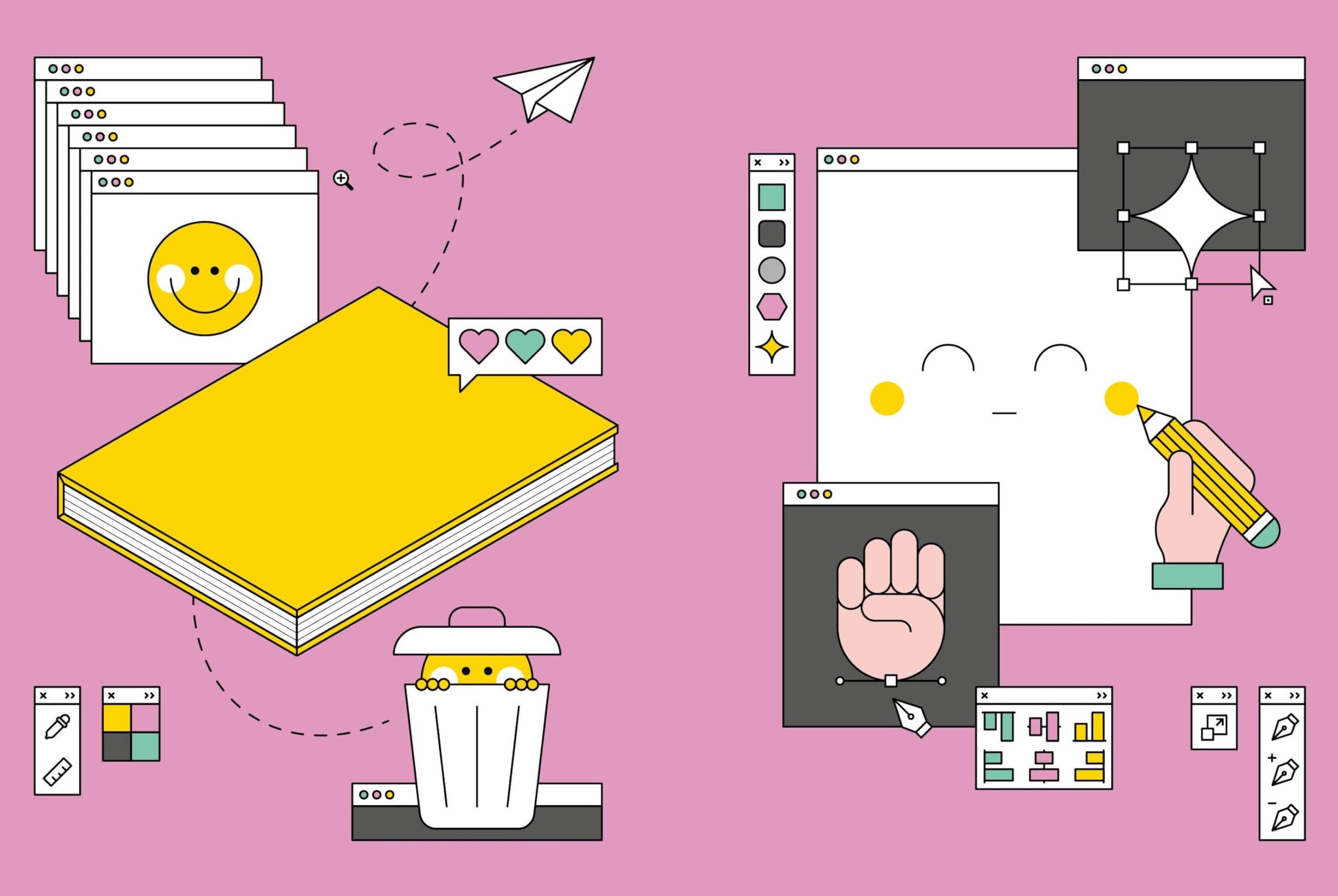 Featuring elaborate four-colour sprayed edges and a pull-out sheet of kawaii stickers, Emojization is an essential design reference as beautiful as it is functional.