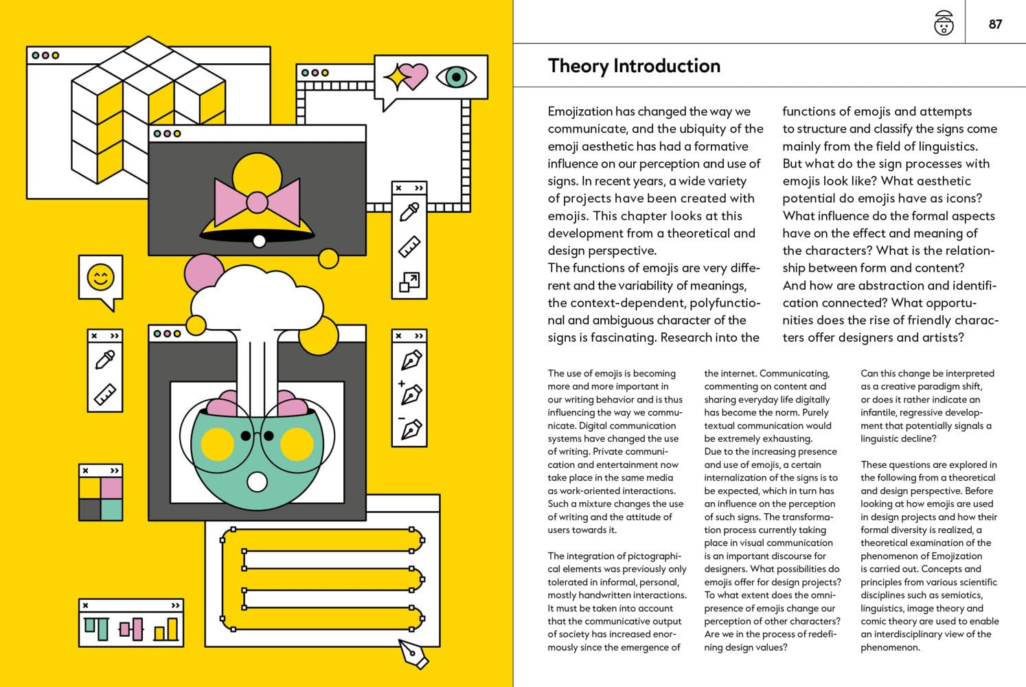 A comprehensive and highly visual overview, from the cultural and theoretical background to the amazing variety and everything one needs to know about the creative potential of emojis.