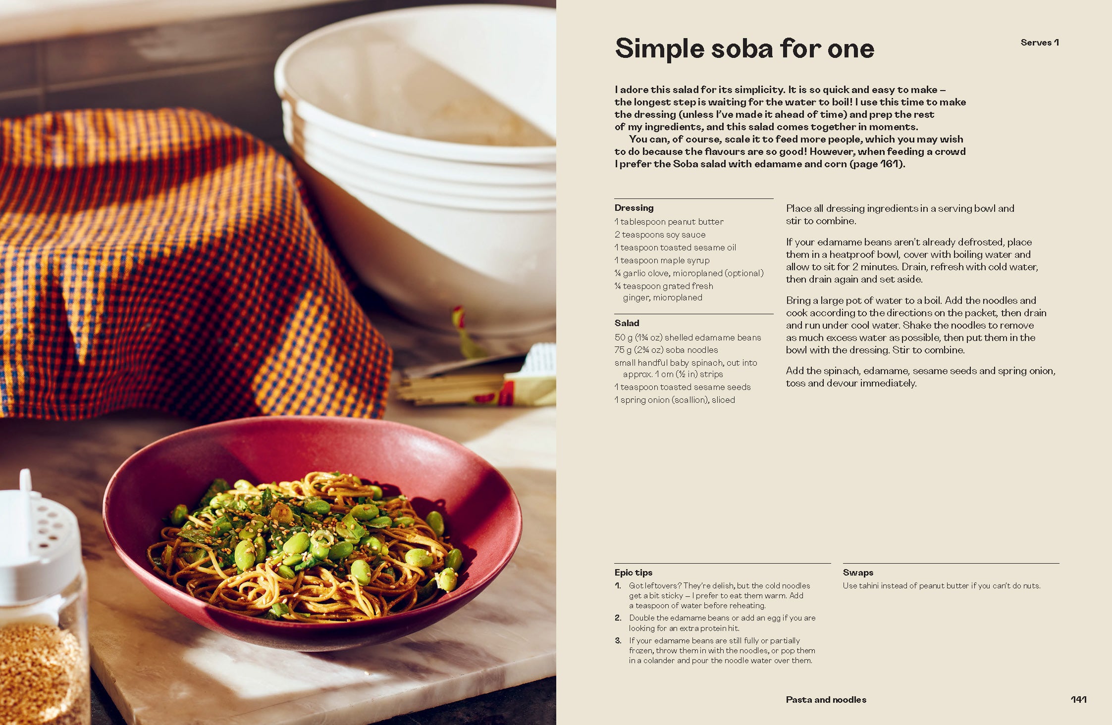Jessica walks you through the five key elements for building delicious salads: leaf, body, protein, dressing and crunch. Armed with this knowledge, you’ll never make a boring salad again. From a simple soba noodle salad to a showstopping haloumi, chickpea and rice salad or the ultimate loaded guacamole, there’s something everyone will love.