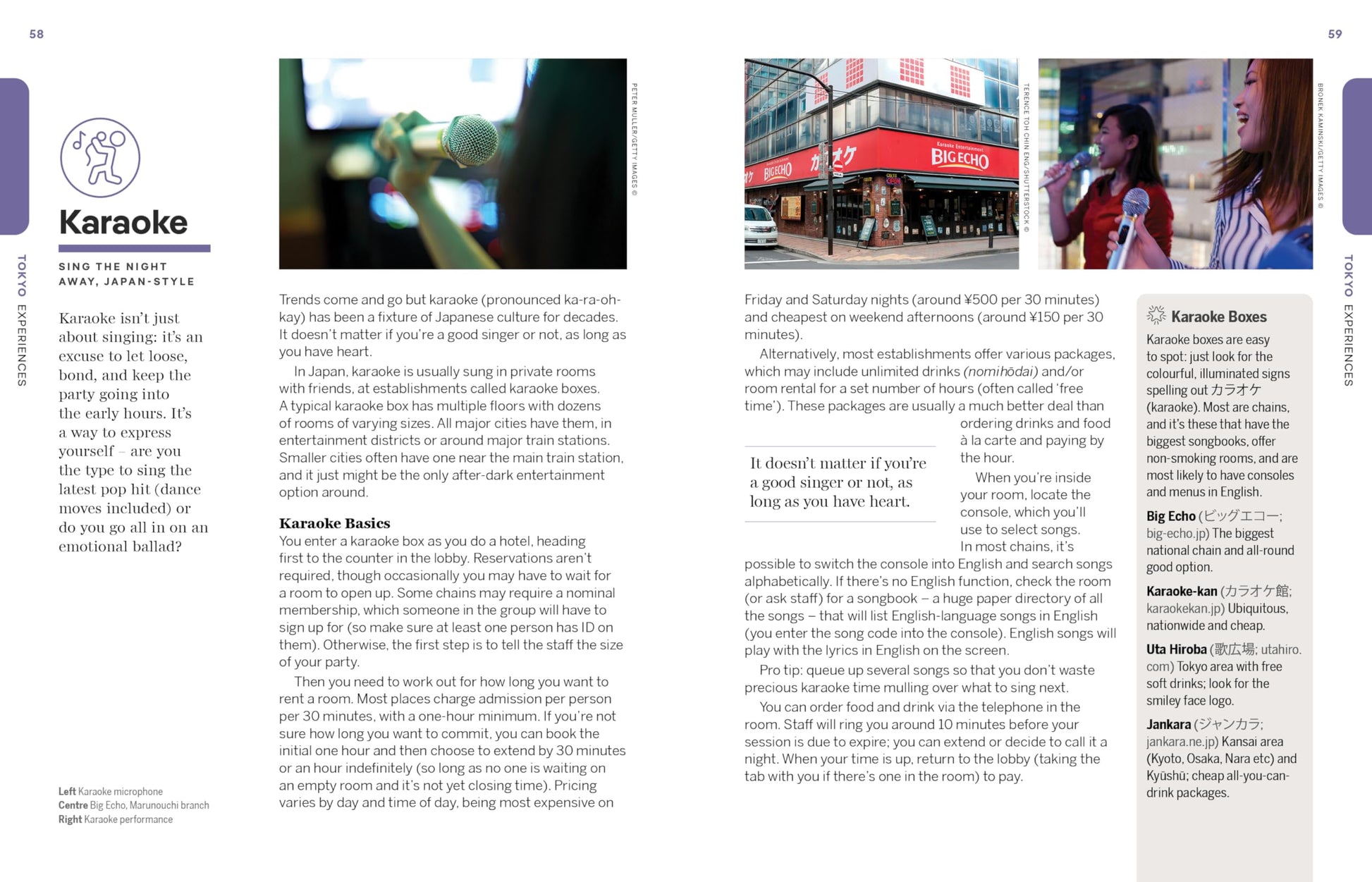 - Fun insights will pique your curiosity and take you to the heart of the place - understand the history and etiquette of Japan's onsen culture; dive into the mysterious world of Yokai and unearth the kappa creature; discover Japan's trendy karaoke scene - whether you're a good singer or not!