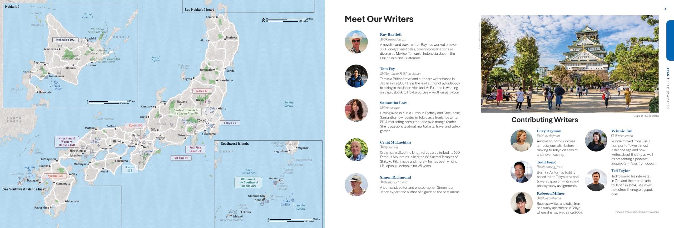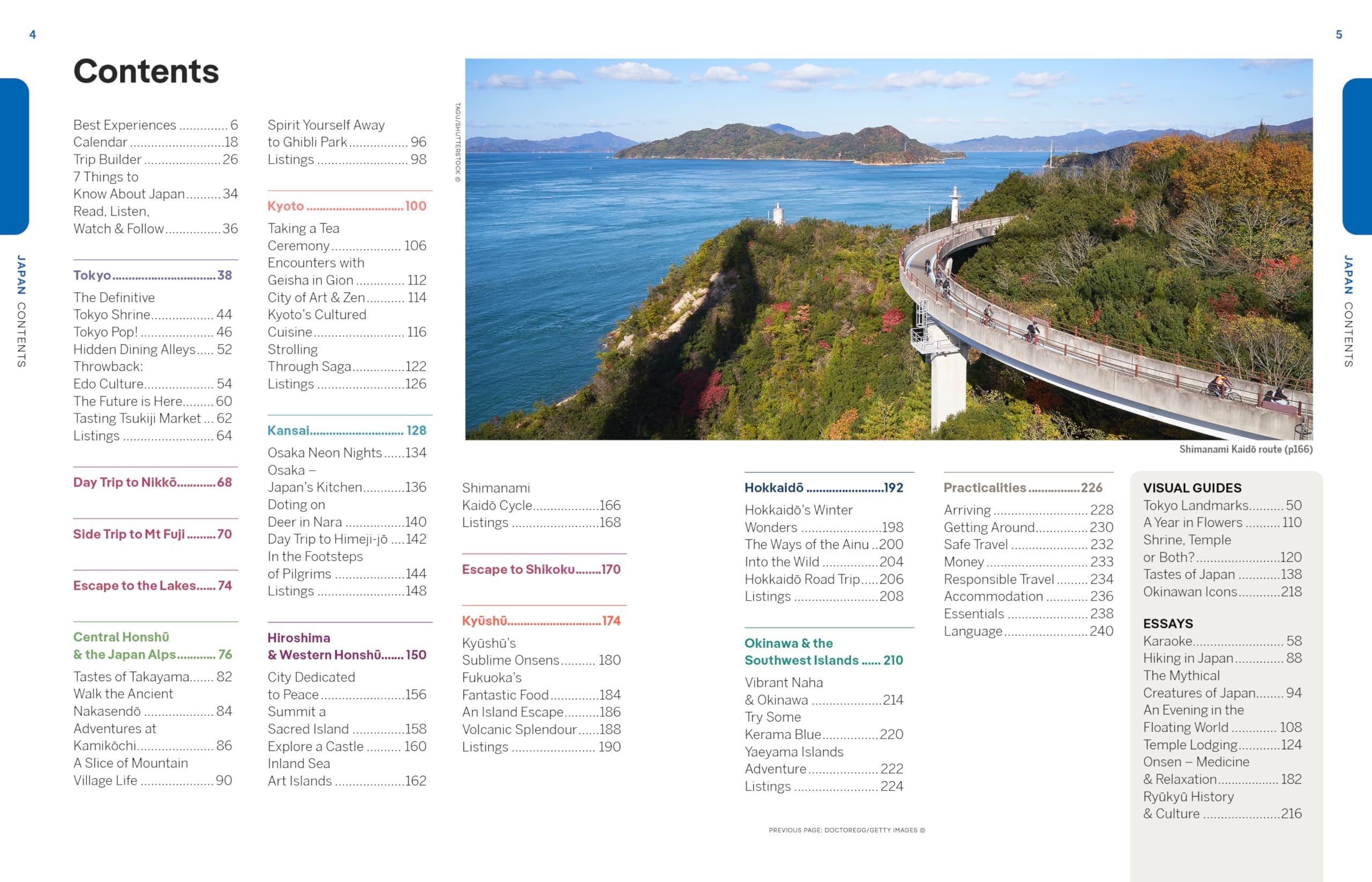 - Covers: Tokyo; Central Honshu & the Japan Alps; Kyoto; Kansai; Hiroshima & Western Honshu; Kyushu; Hokkaido; Okinawa & the Southwest Islands; plus trips and escapes to Nikko; Mt Fuji; the Lakes; and Shikoku