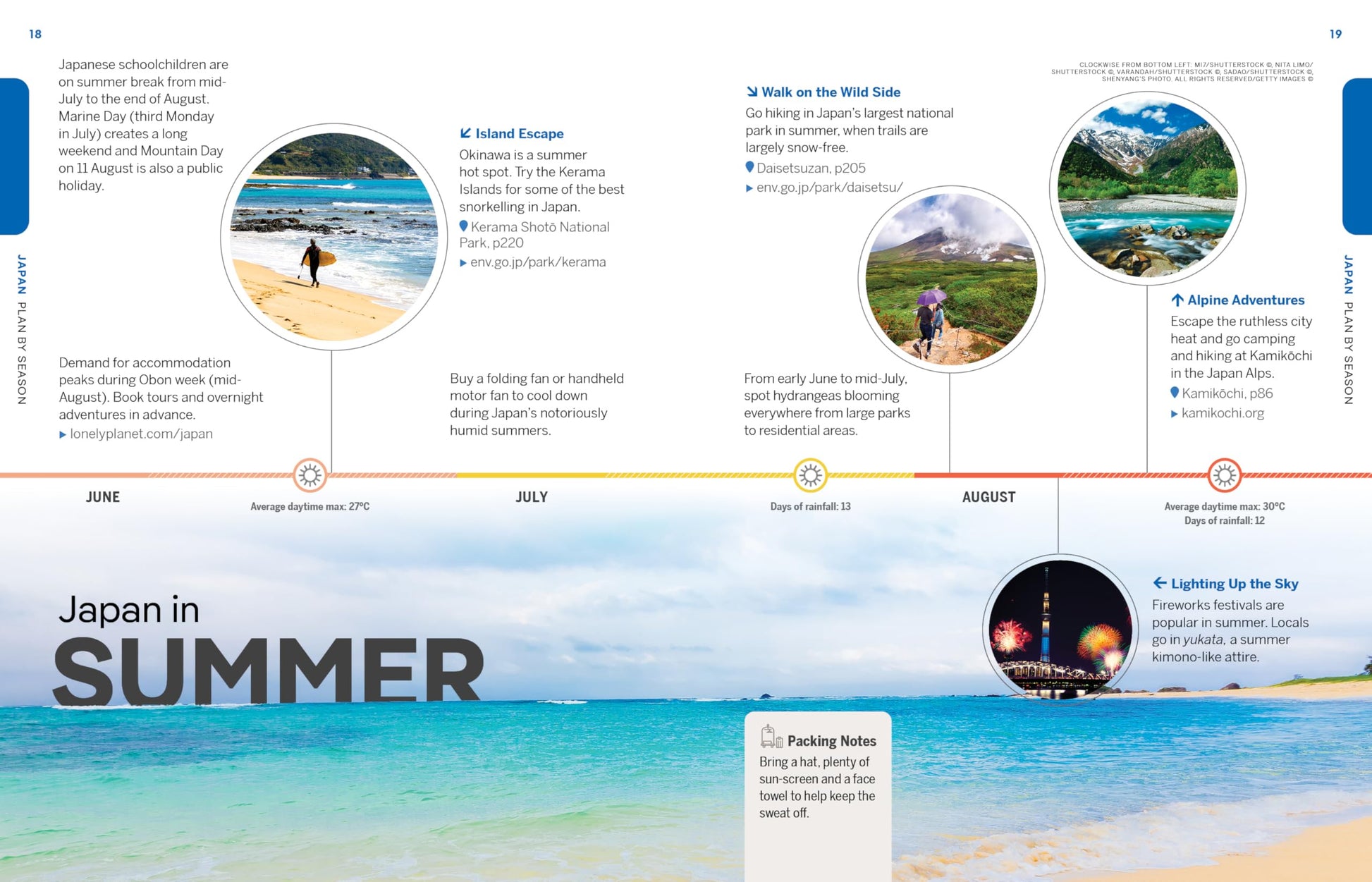 - Handy seasonal planning calendar guides you on where to go, when to travel, and what to pack