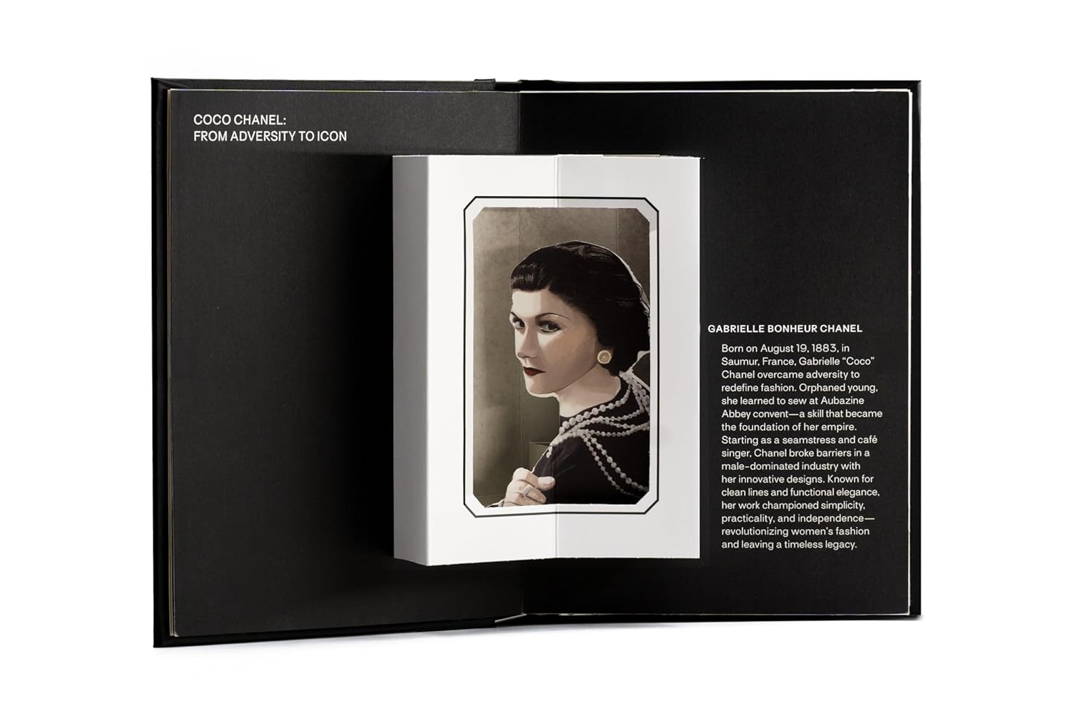 Crafted to Captivate - Masterfully designed with exquisite illustrations and paper engineering through layered, immersive storytelling―presenting Coco Chanel's captivating story, brand heritage, anatomy of icons, and lesser-known anecdotes in a display-worthy hardcover with snug slipcase.