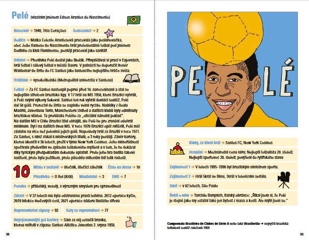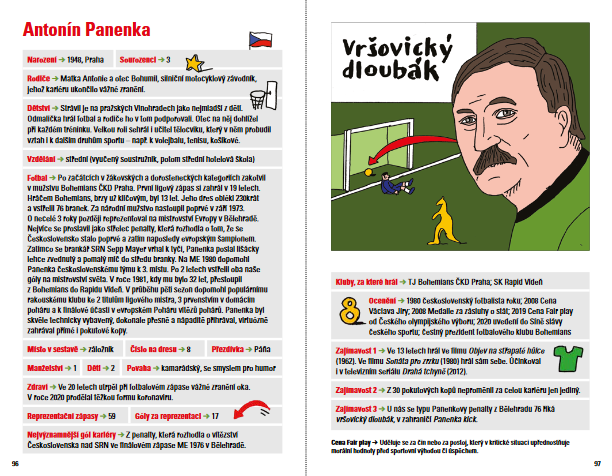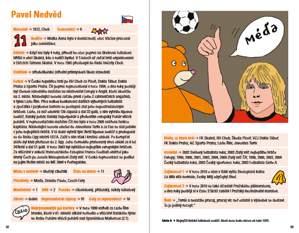 Pisarz Petr Feldstein i ilustrator Jiří Votruba poprowadzą Cię przez niezwykłe losy 66 niezapomnianych osobistości najpopularniejszego sportu na świecie w nietradycyjnym Fotbalvníku.