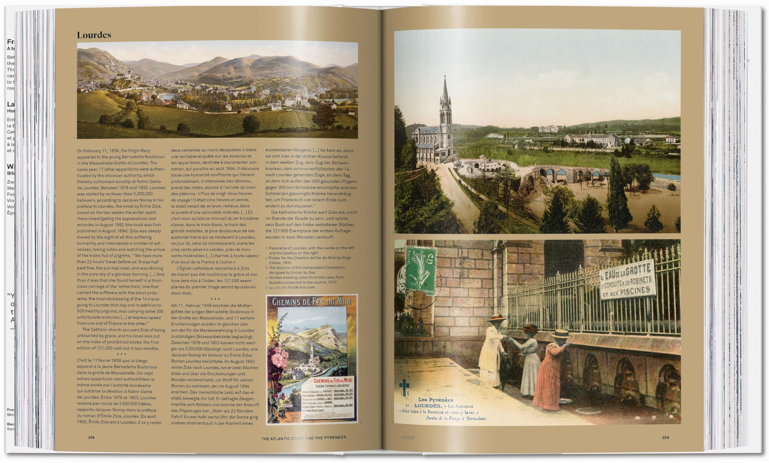 Through some 800 vintage photographs, postcards, posters, and photochromes from the extensive archives of Marc Walter and Photovintagefrance, France 1900 follows up on TASCHEN’s best-selling vintage photographic collections Italy 1900, The Grand Tour, and America 1900 to provide a precious record of France in all its turn-of-the-century glory. With the photochrome technique used in many of the images restoring the past to vivid color, we enjoy a bristling close, bittersweet, encounter with this hopeful age: the brave, stony splendor of the Mont Saint-Michel; the icy peaks of Chamonix; and the honey light of the Côte d’Azur.