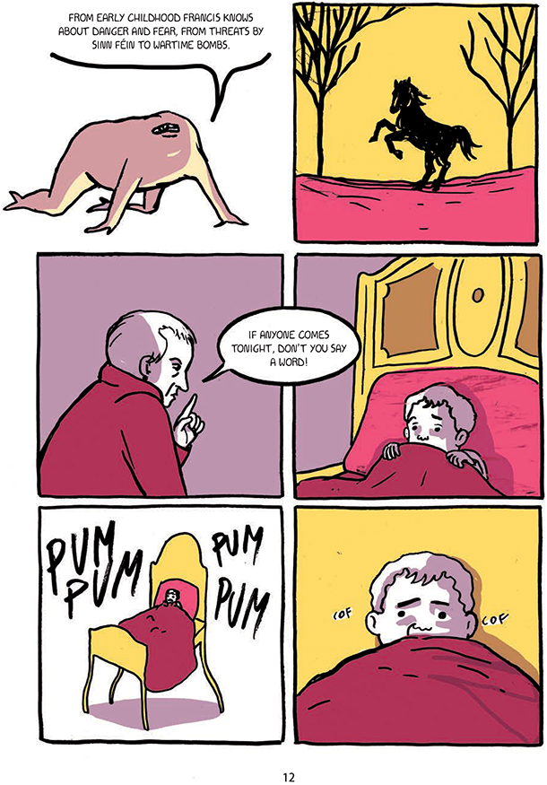 Opowiedziana po raz pierwszy w formie powieści graficznej historia życia Francisa Bacona jest równie złożona, kolorowa i pełna napięcia jak jego obrazy. Rysowane w odcieniach fioletu, czerwieni, żółci i błękitu, które wyróżniały jego paletę, ilustracje te splatają niepokojącą, ale pełną współczucia narrację, która czerpie z tragicznych wydarzeń z dzieciństwa i młodości Bacona, a także odzwierciedla głęboko namiętne tęsknoty Bacona. artystą, jakim się stał.