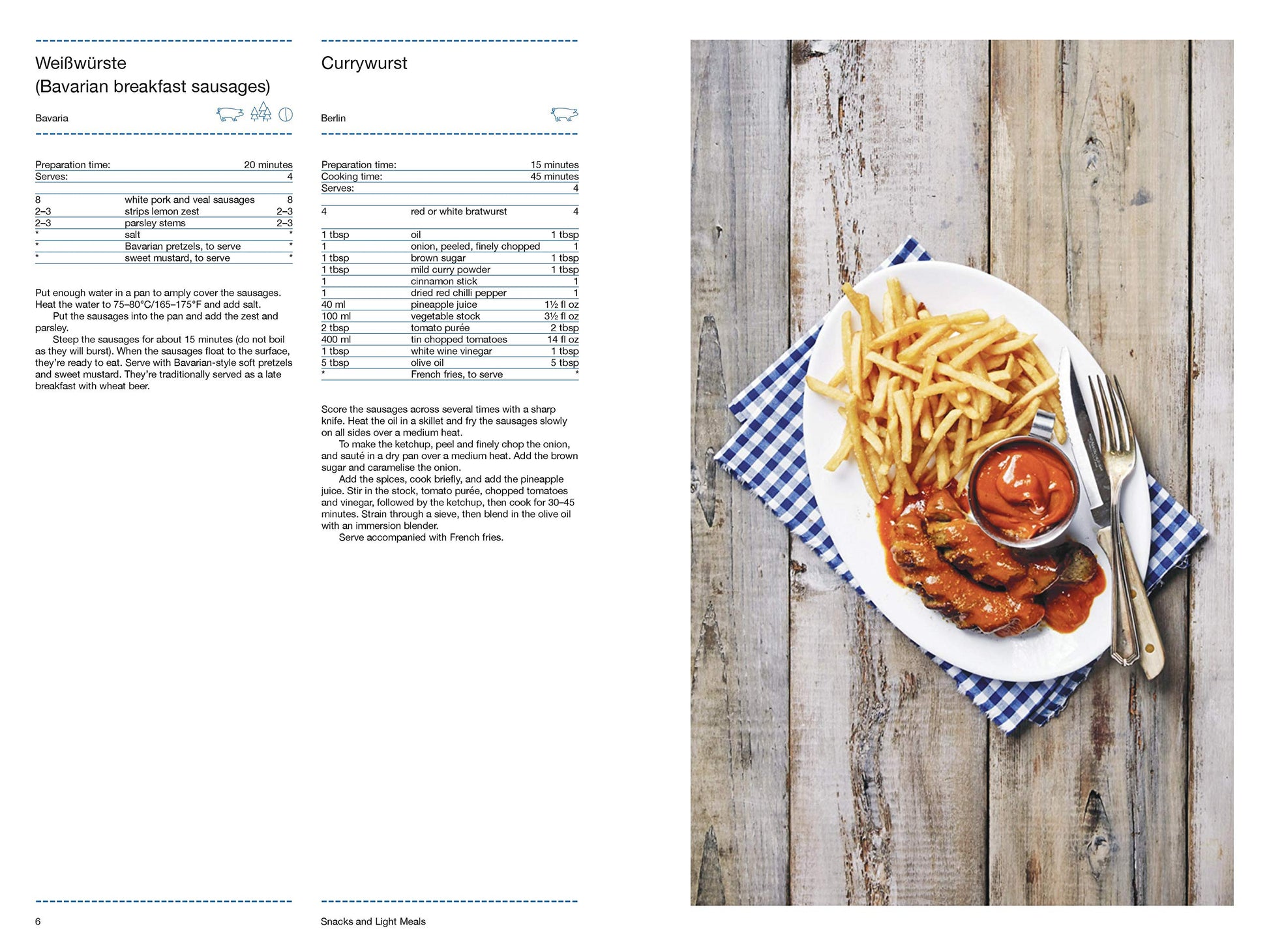 Ta autorytatywna książka ukazuje tę różnorodność i zawiera 500 przepisów obejmujących zarówno ukochaną kuchnię tradycyjną, jak i współczesne dania reprezentujące nowy kierunek niemieckiej kuchni – od przekąsek po desery, mięso, drób i ryby, po ziemniaki, kluski i makaron. Wprowadzenie prezentujące kulinarną historię kultury kraju przybliża genezę klasycznych przepisów.