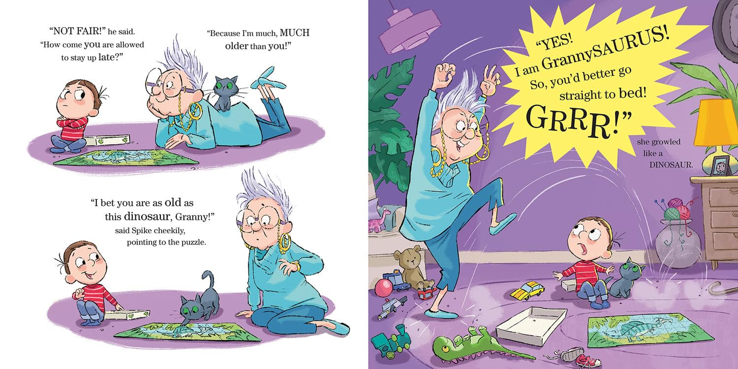 One night, Spike creeps downstairs in his pyjamas to find that his granny has turned into a dinosaur – GRANNYSAURUS!