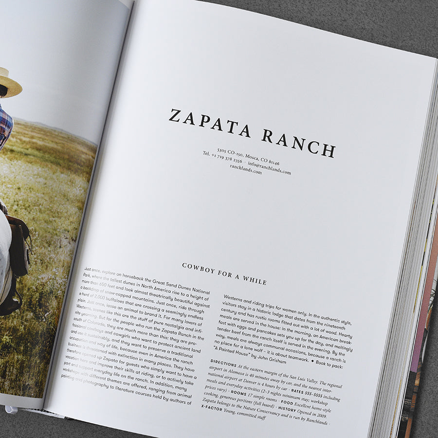 Fotografie zawarte w tej bogatej publikacji przedstawiają hotele oparte na tradycji wielkich architektów, takich jak Frank Lloyd Wright, a także prace młodych współczesnych projektantów i budynki w typowym amerykańskim stylu z połowy stulecia. W cenę wliczona jest także stadnina koni, obiekt glampingowy, a nawet hippisowska łaźnia i przyczepy kempingowe w stylu vintage – miejsca tak różnorodne jak same USA!