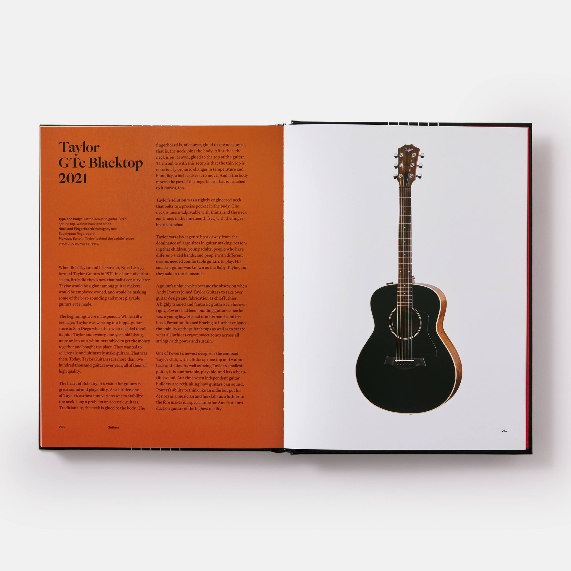 Zawiera 100 najlepszych i najbardziej innowacyjnych modeli gitar od XVII wieku do współczesności oraz muzyków, którzy zmienili oblicze muzyki popularnej. Książka Guitar zawiera fascynujące historie stojące za kultowymi modelami eklektycznej mieszanki marek, w tym Alden, D'Angelico , Fender, Gibson, Gretsch, Ibanez, Kay, Martin, Millimetric Instruments, Mosrite, Greg Smallman i Stauffer.