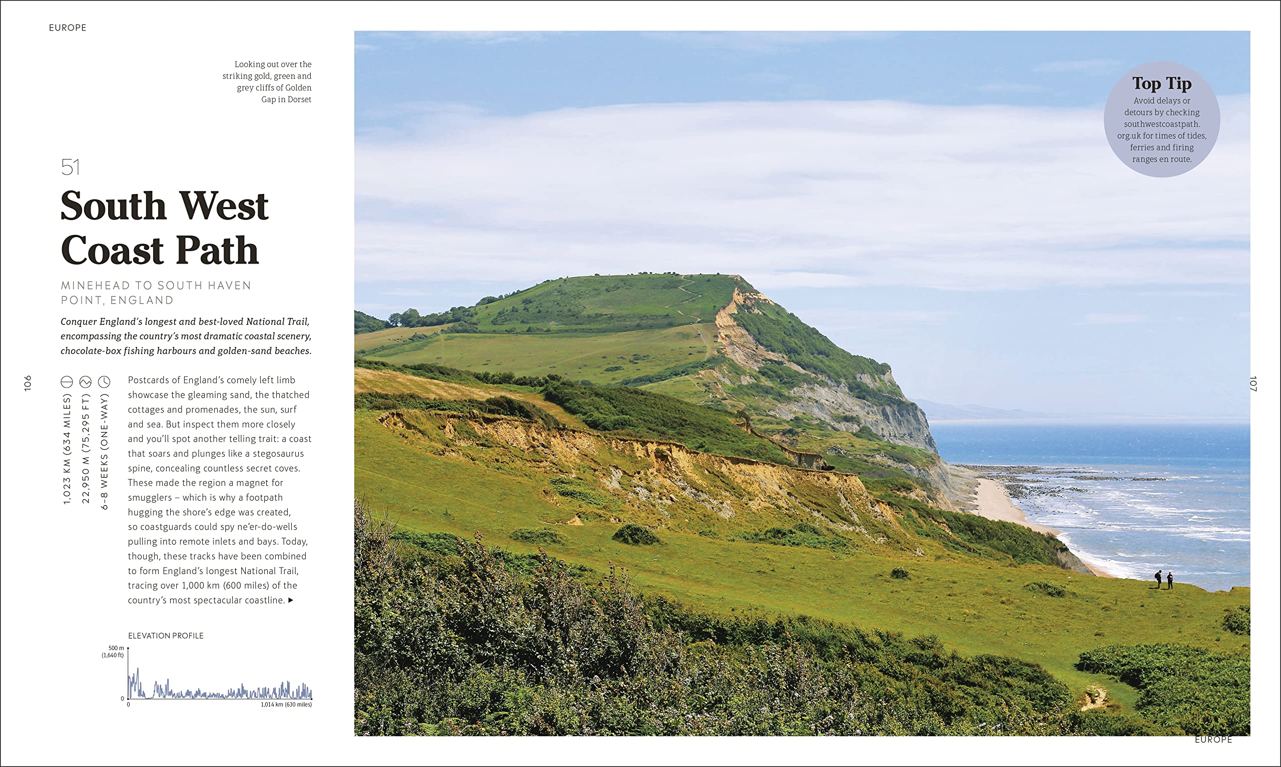 Ta książka, opracowana przez zespół entuzjastów spędzania czasu na świeżym powietrzu, zawiera mnóstwo pomysłów na następną pieszą wycieczkę. Inspirujące zdjęcia i fascynujące opisy każdego szlaku sprawią, że będziesz mieć ochotę na spacer, a przydatne mapy, profile wysokości i informacje praktyczne – w tym takie rzeczy, jak dystans i całkowite przewyższenie – pomogą Ci zaplanować najdrobniejsze szczegóły podróży. Zamieściliśmy także najlepsze miejsca do zwiedzania na trasie, a także sugestie dotyczące alternatywnych sposobów pokonania szlaku.