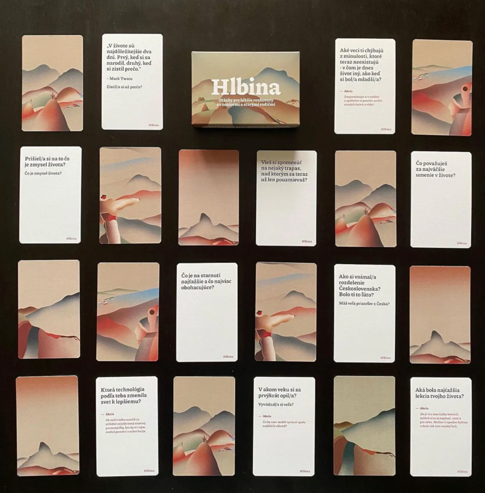 Nová Hlubina prarodičů obsahuje karty s 60 otázkami, které pomáhají vytvořit příjemnou atmosféru jak mezi jednotlivými generacemi, tak ve skupině seniorů. S jejich pomocí se dostanete k otázkám a odpovědím, ke kterým byste se s prostým "Jak se dnes máš, babi?" nedostali. byste nedostali.