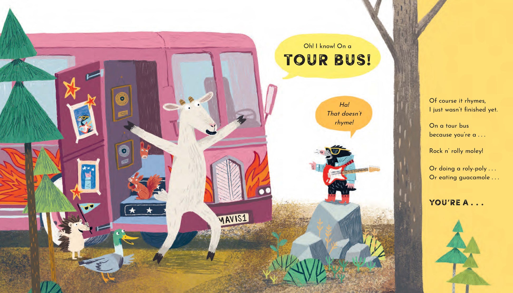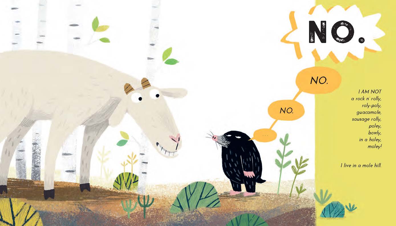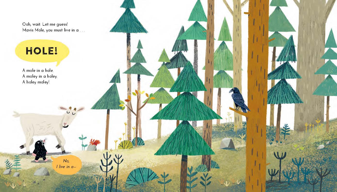Koza Gus uwielbia zgadywać. I uwielbia rymować. Kiedy więc poznaje Mavis Mole, nie może powstrzymać się od odgadnięcia, gdzie ona mieszka. Czy jest w dziurze? W misce!? W Kiełbasie ROLL!! Cóż, nie do końca. . .