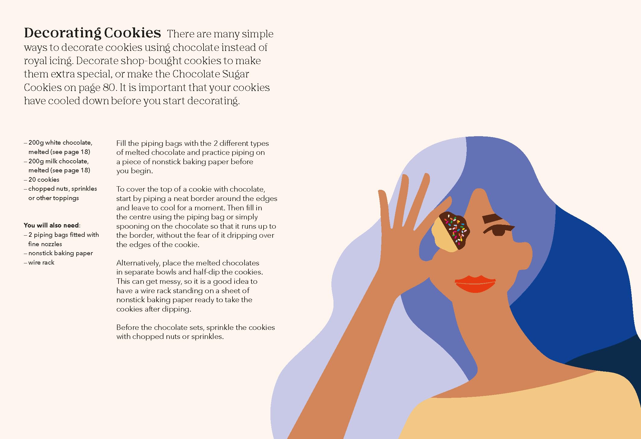 Pełne pysznego bogactwa przepisy zawarte w książce Jak jeść czekoladę zainspirują chciwość, obżarstwo i pobłażanie sobie – wszystkie cnoty, które cenią szanujący się czekoladoholik – a kolorowe ilustracje w stylu retro sprawiają, że książka będzie prezentem, któremu nie można się oprzeć.