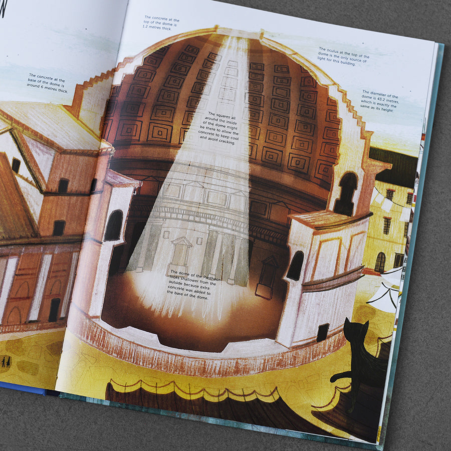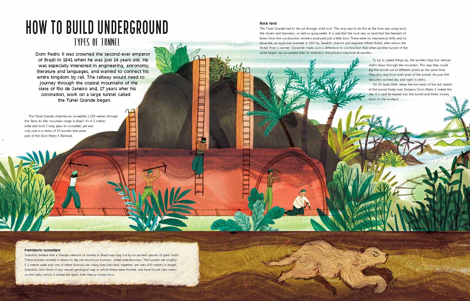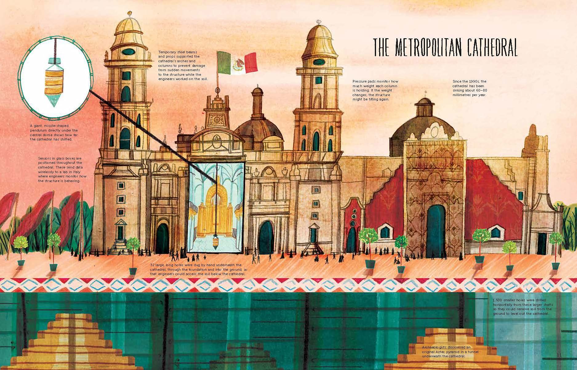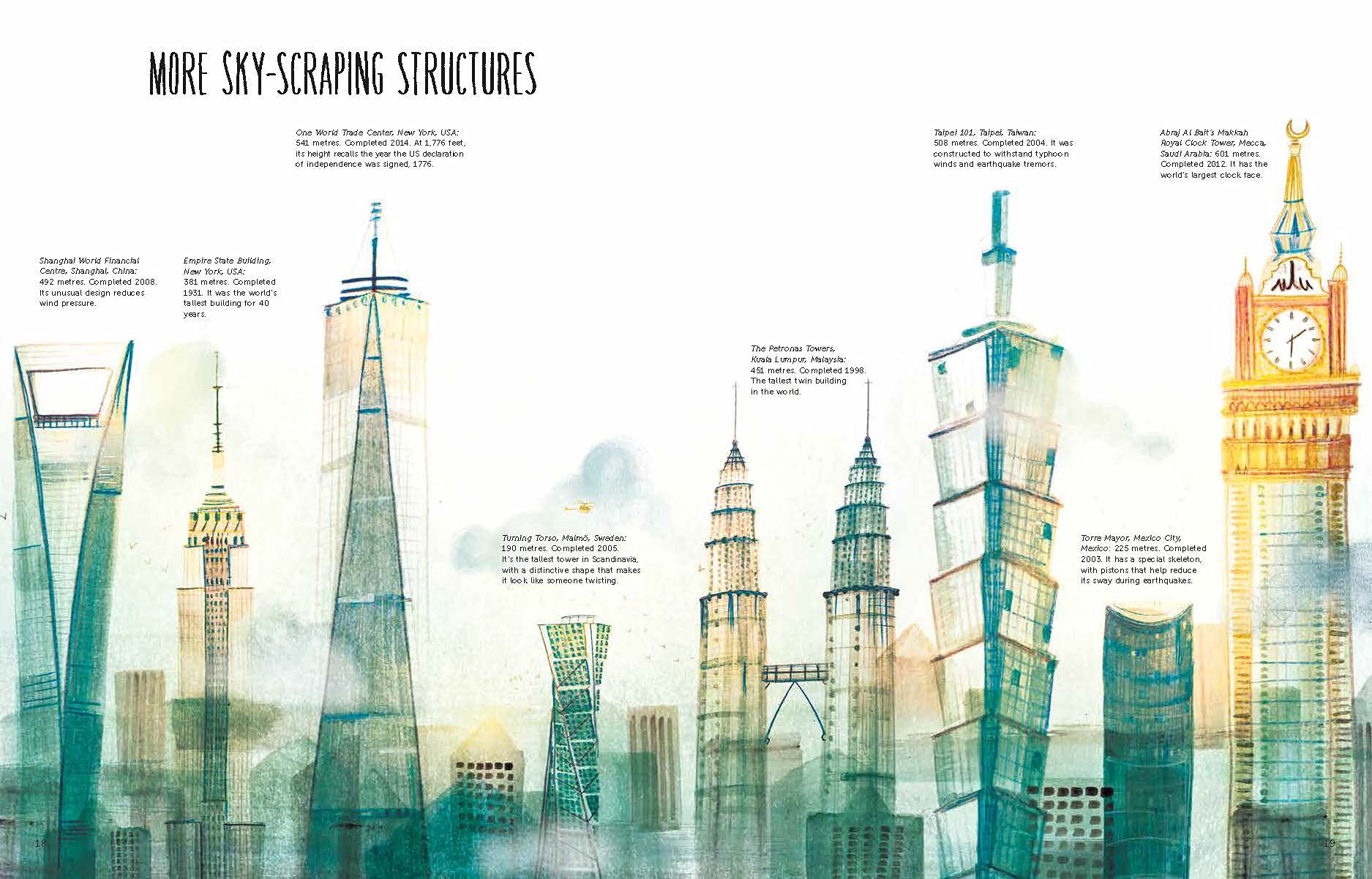 Piękne i szczegółowe ilustracje autorstwa Katie Hickey, w tym przekroje poprzeczne, linie horyzontu i zbliżenia technik inżynieryjnych w akcji, zapewniają wyjątkowe i pouczające perspektywy naszych najbardziej inspirujących konstrukcji.