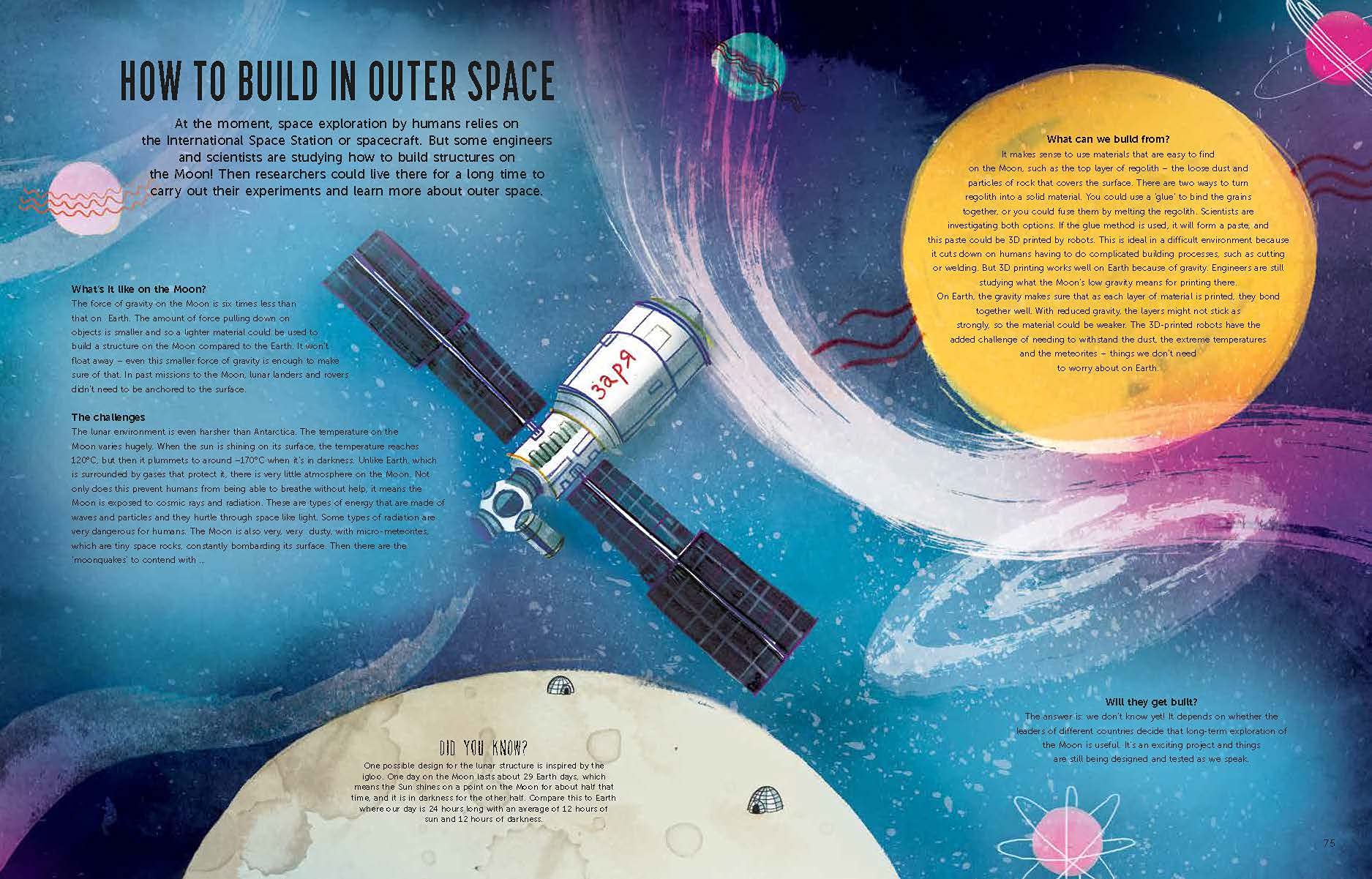 Poznaj niezwykłych ludzi, którzy podważyli nasze przekonania o tym, co jest możliwe, pionierów niezwykłych wynalazków, które pomogły w budowie Mostu Brooklyńskiego w USA, Panteonu we Włoszech, Burdż Chalifa w Dubaju, Shard w Anglii i Kopuły Sapporo w Japonii. Odkryj genialne metody, które opracowali inżynierowie, aby umożliwić nam budowanie pod ziemią, pod wodą, na lodzie, a nawet w kosmosie. Dowiedz się także o wpływie, jaki różne siły i materiały mogą mieć na konstrukcję, przeprowadzając własne eksperymenty inżynieryjne z sekcji „Wypróbuj w domu”.