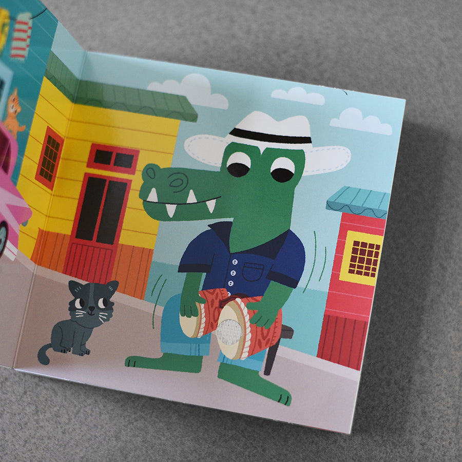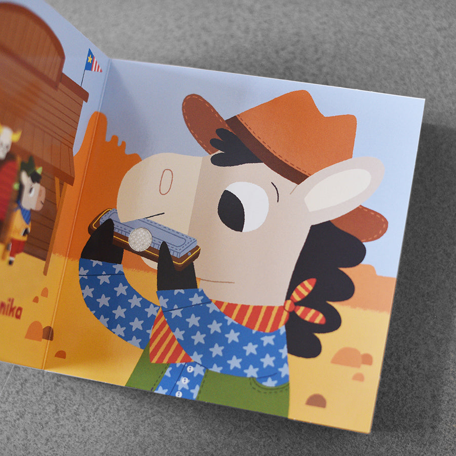 Naciśnij przycisk i słuchaj melodii instrumentów muzycznych z całego świata. Realistyczne dźwięki gitary hawajskiej, chińskich skrzypiec, szkockich dud, harmonijki ustnej, kubańskiego bonga i gitary flamenco. W tym wydaniu mamy obecnie kolejną leporelę dźwiękową Cała muzyka świata, Instrumenty muzyczne 1 i Instrumenty muzyczne 2. Te leporele są przeznaczone dla dzieci od 1 roku życia, przyciski dźwiękowe są dotykowe, do uruchomienia muzyki nie jest potrzebna żadna siła lub dźwięk.