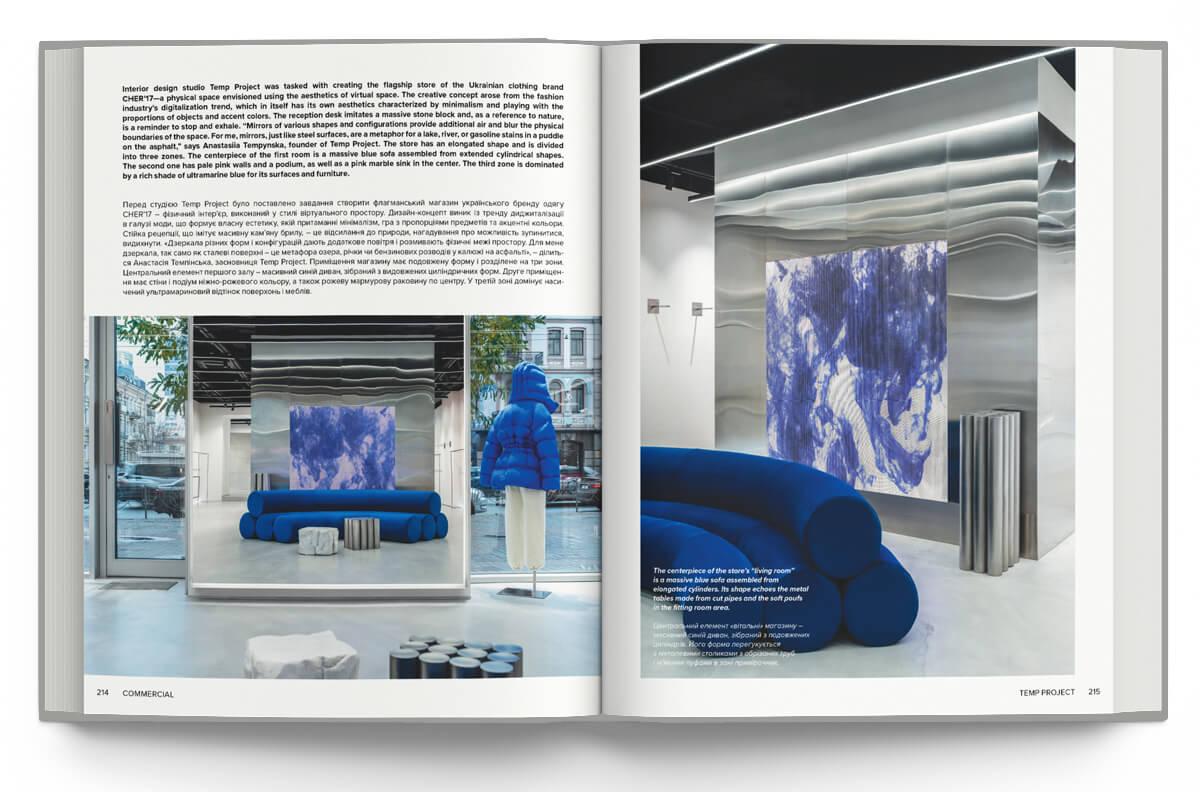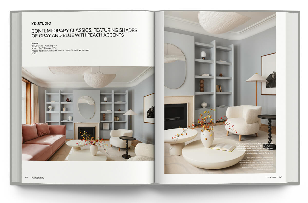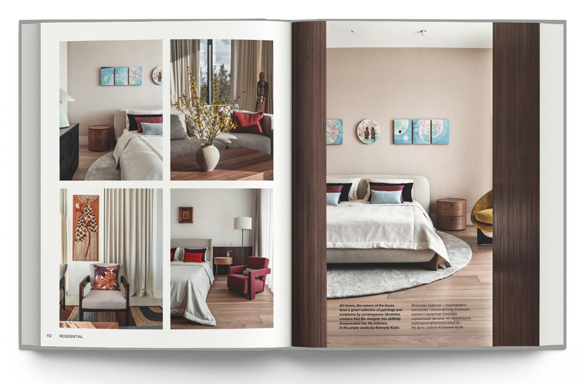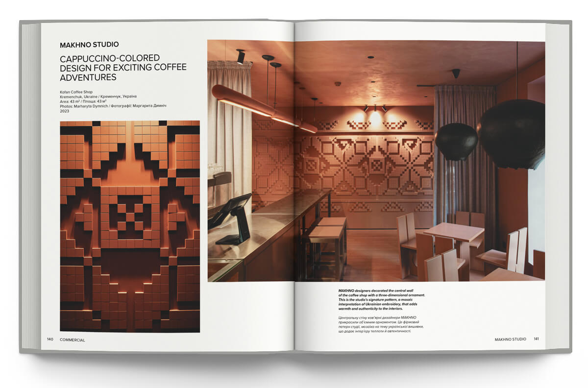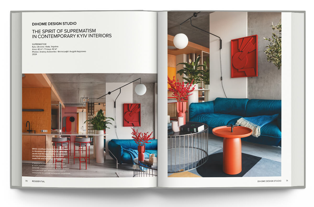 The Interior Design book covers commercial and residential real estate projects that were implemented and/or commissioned during the full-scale war in Ukraine: from 2022 to 2024. The edition includes objects from 34 Ukrainian designers and studios. The publication is not just about modern interiors, but, above all, about talented Ukrainians – designers and architects who continue to work, create, and fulfill their own ideas and dreams for their clients even in the most difficult times for life and business. This book is the third edition of the series on interior design by Creative Publishing. Many professionals have left Ukraine due to the full-scale invasion or are looking for new markets, so the editors have also added their foreign projects created during the war to this book.