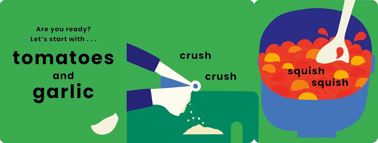 Every page of this sturdy board book features a new read-aloud word to see and say. Then, lift the flap to follow the action: squish the tomatoes, grate the cheese . . . In six simple steps you'll have made tomato pasta. Delicious!