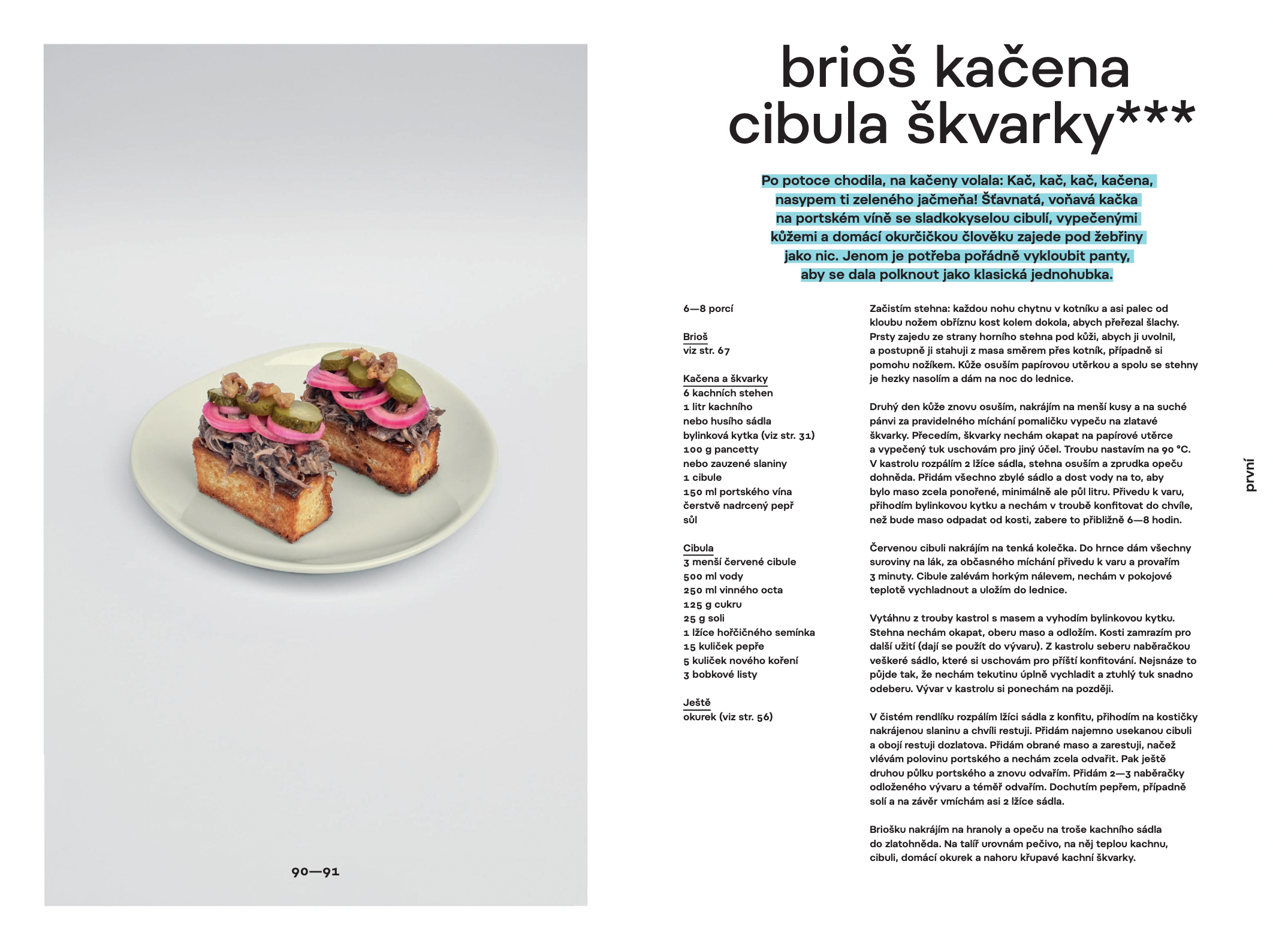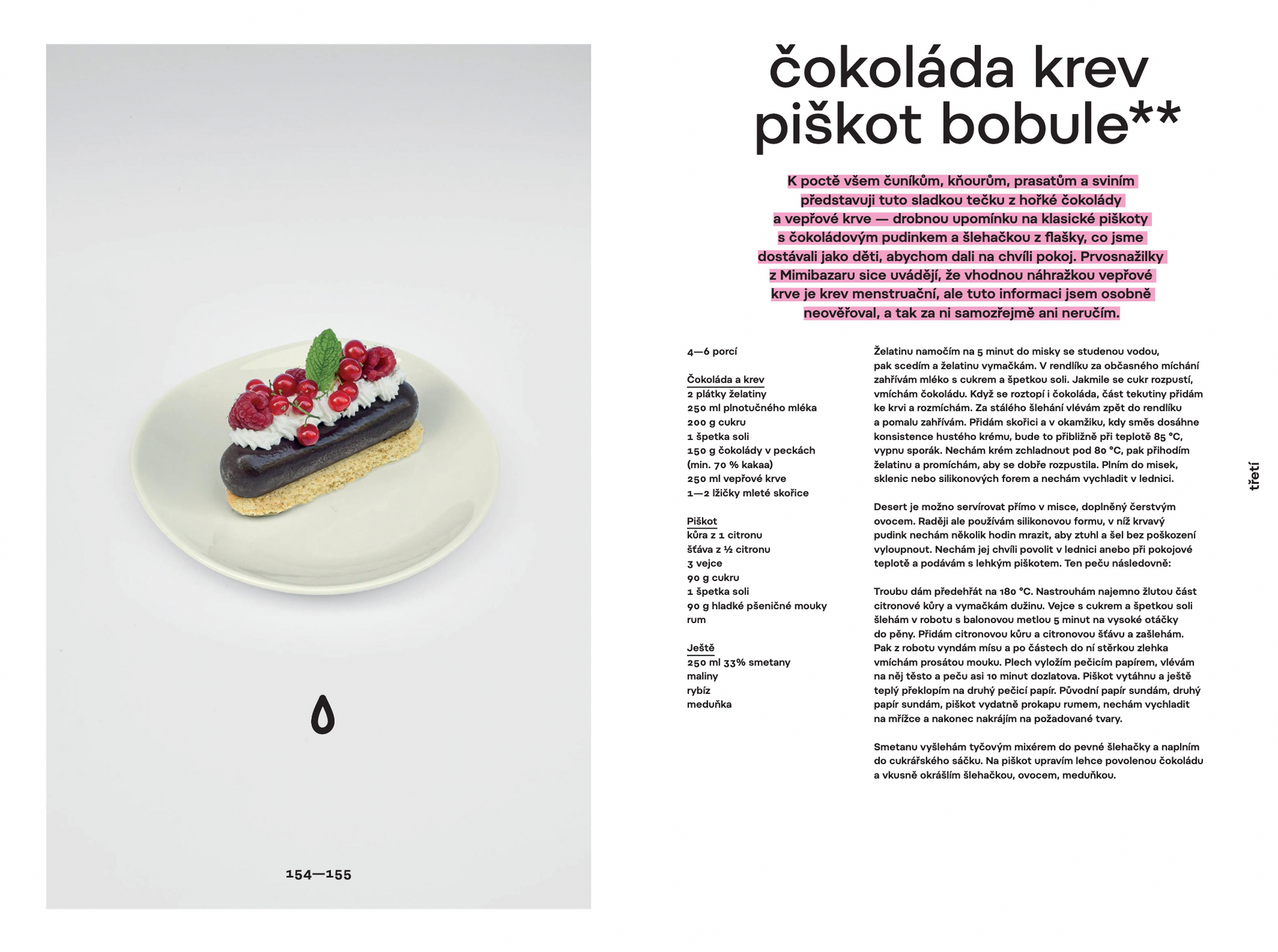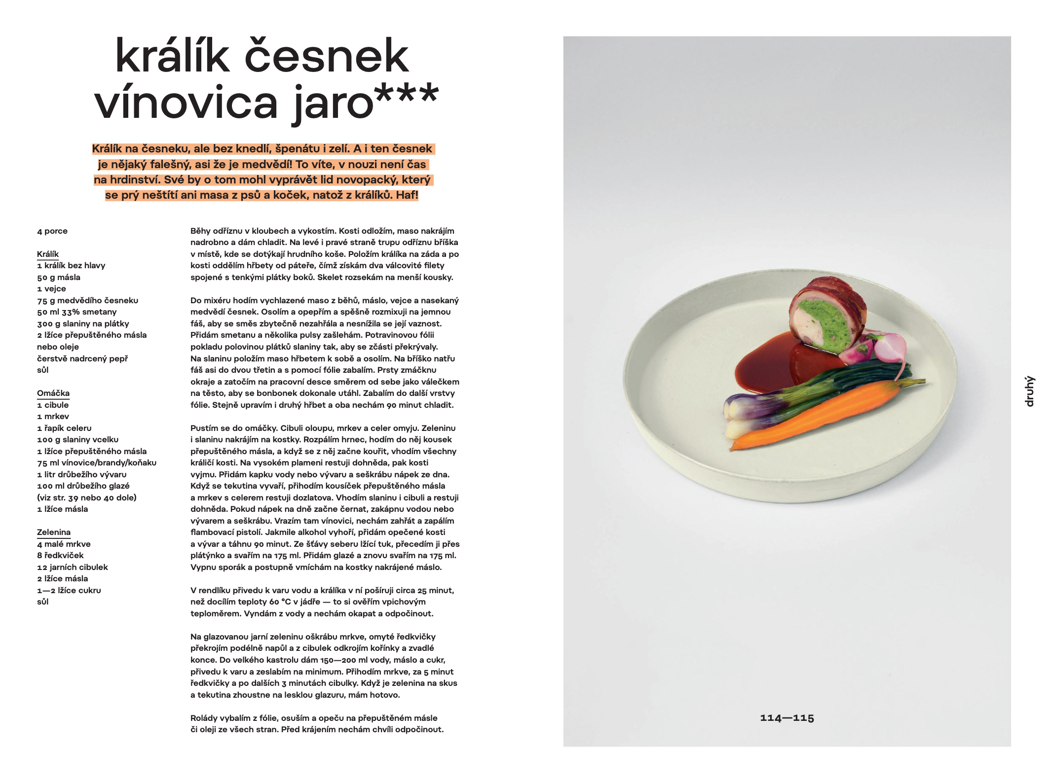 „Nie noszę Rondonu z wyhaftowanym imieniem, nie używam espum, nie lubię ważyć składników i nie lubię ekskluzywnych składników, przesadnej pewności siebie czy obcisłych majtek. Na szczęście jest wiele innych rzeczy, które szczerze lubię. I takie są tematy książki, która jest szczerym hołdem złożonym jedzeniu, na którym się wychowałam. Kiełki, podroby, wino, brandy owocowe, orzechy, zioła czy chleb zwykły to produkty typowe dla naszego kraju i jednocześnie podstawa mojej kuchni. Nie toleruję staromodnego gotowania w rondlu, tłuszczu zwierzęcego, mocnych sosów i zapachu wędzonego mięsa. Chciałabym zwrócić uwagę na zupełnie proste, tanie i często pomijane składniki, które kiedyś były częstym elementem domowych jadłospisów. Pszenica, grad, pokrzywy, jeżyny, porzeczki, ślimaki, ogon indyczy czy wołowy napawają mnie większymi emocjami niż foie gras z ananasem czy osiemnastodaniowe menu gotowane w plastikowej prezerwatywie, podawane na łupku i pokryte spektakularnymi chmurami suchego lodu i ciekły azot.”