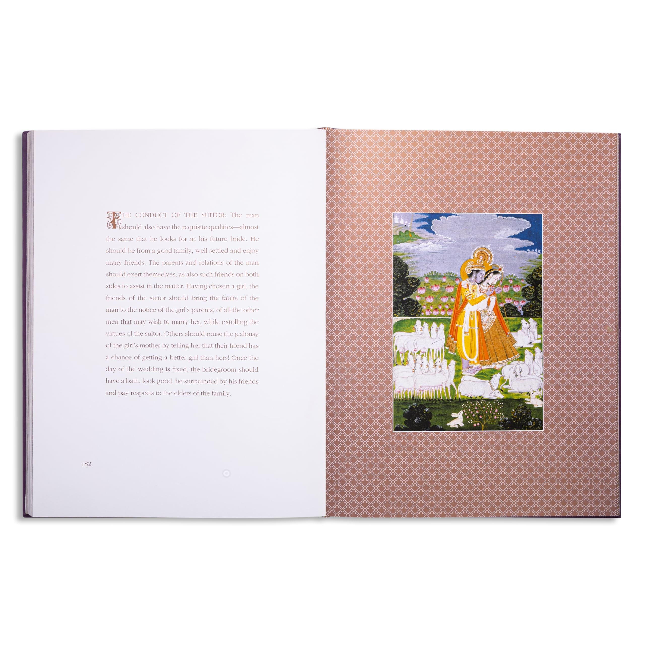 Tato edice obsahuje nejen samotný text, ale také bohaté, živě kolorované a detailně propracované ilustrace – miniatury, tantrické malby a další umělecké motivy, které vizuálně doplňují význam jednotlivých pasáží. Nejedná se o běžný „sex-manual“, ale o kultivovanou knihu o umění života a lásky, která radí i o vztazích, etiketě, společenském chování a estetické spřízněnosti.